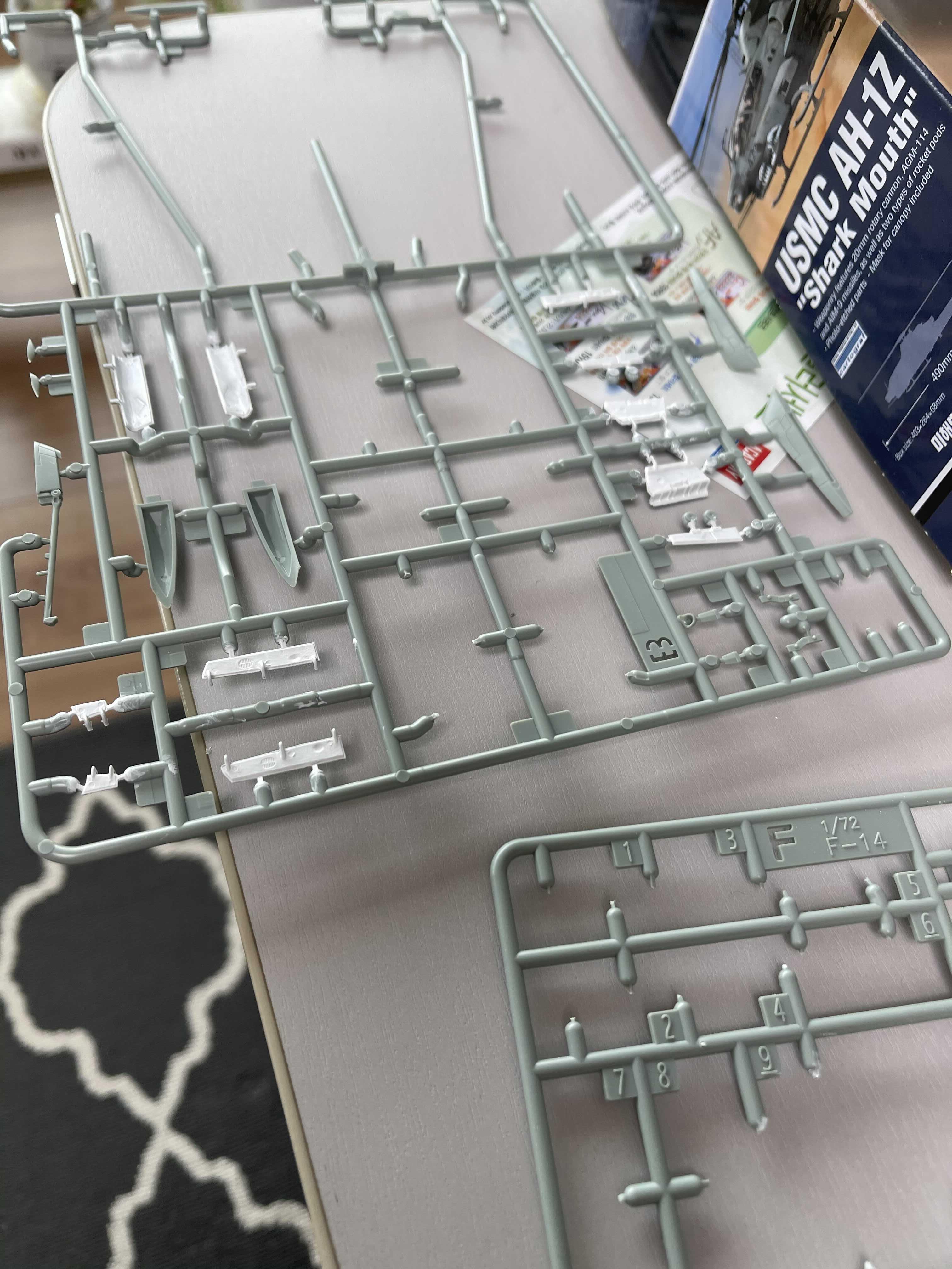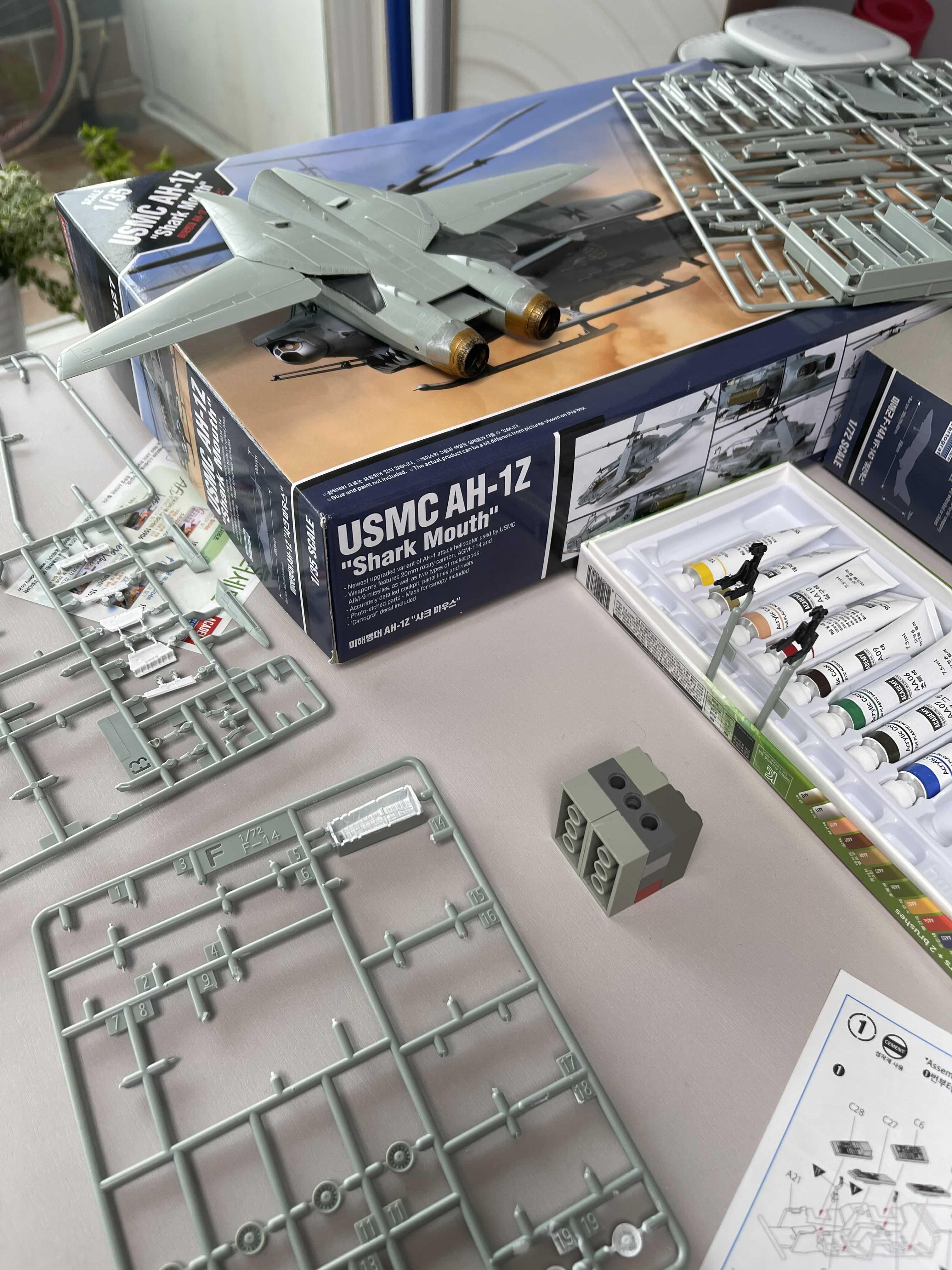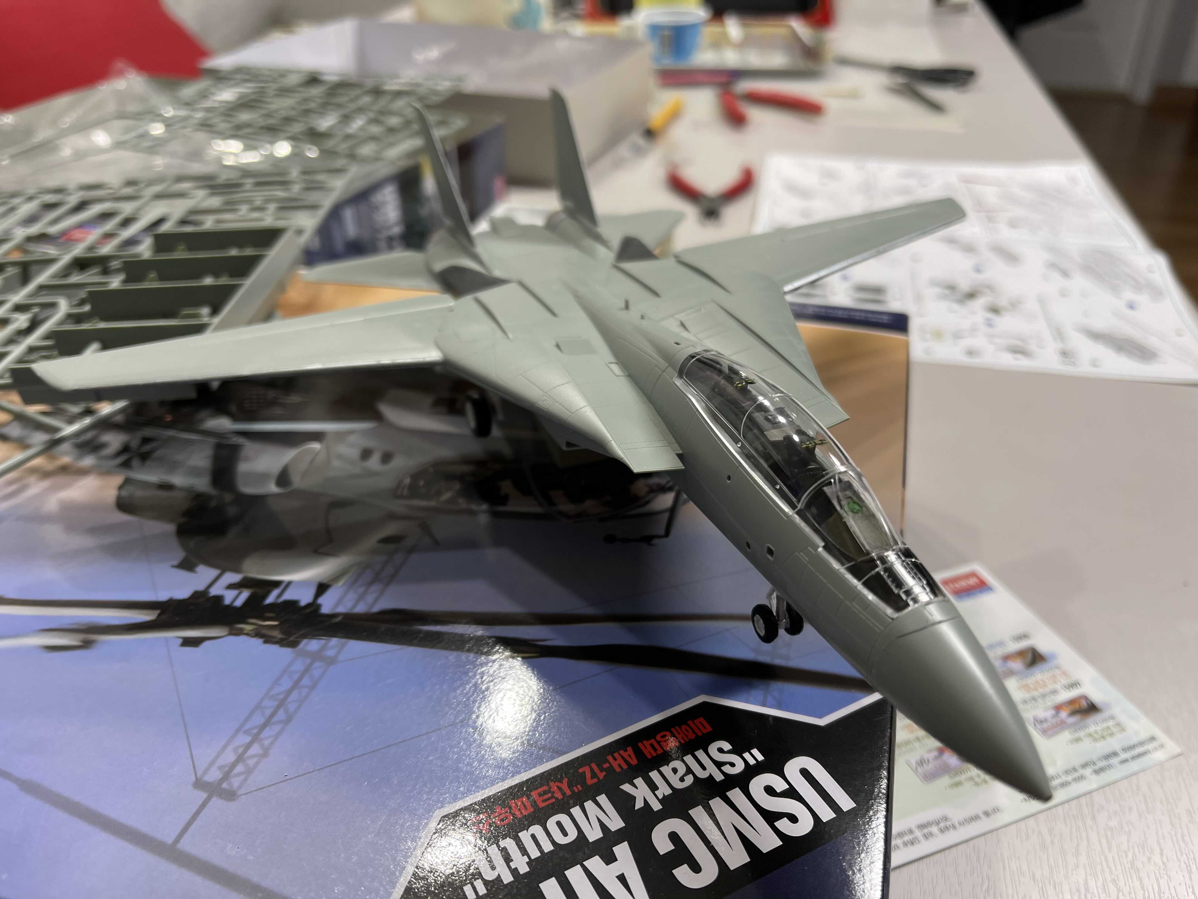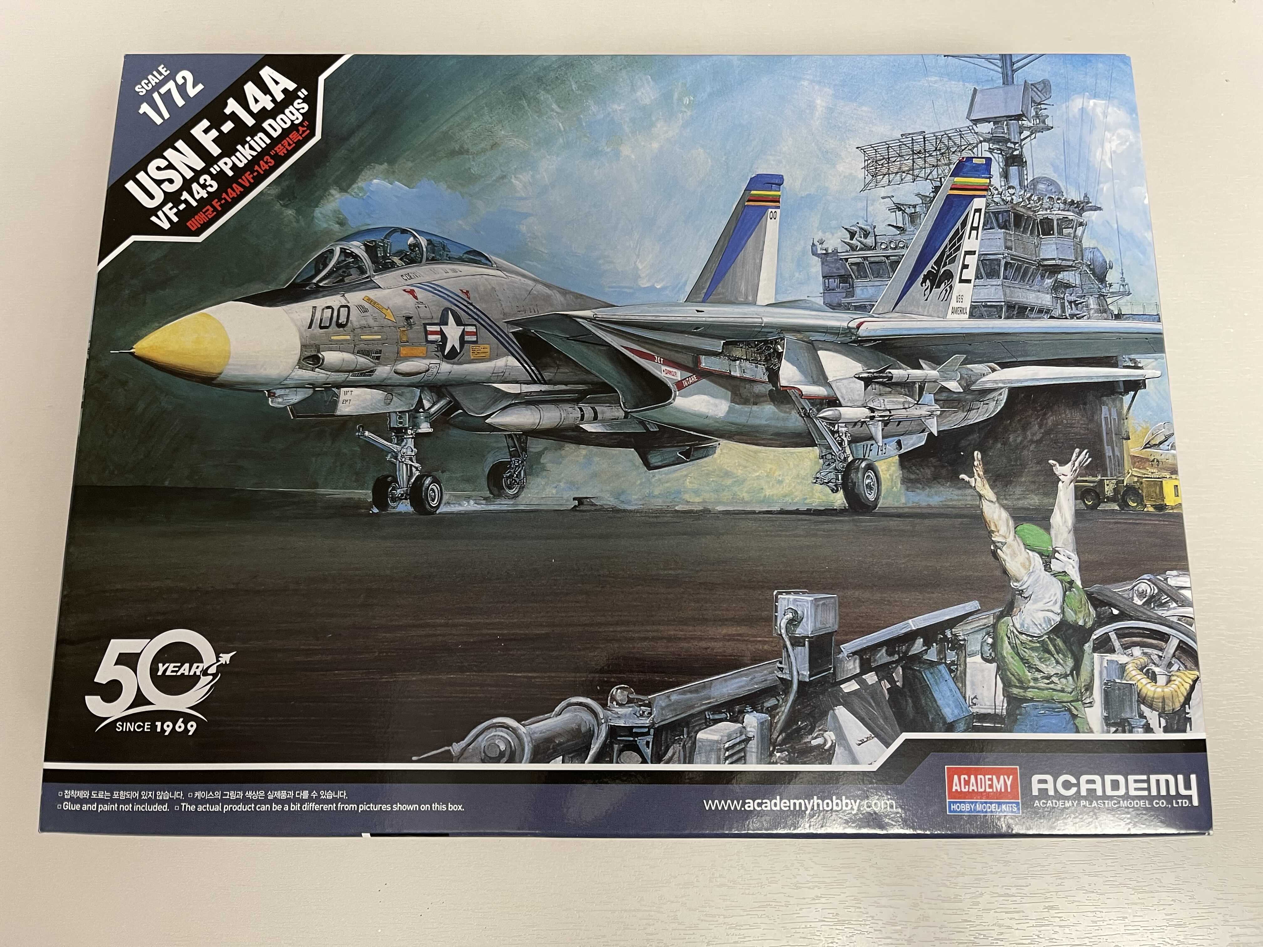 아들래미 샤크 마우스를 같이 만들다 보니 갑자기 창작 욕구가 불타올라서 예전부터 눈여겨 보고 있던 비행기 모델을 만들기 시작했다. 역시 비행기는 전투기. 전투기 중에서 날개가 접히는 F14 모델이 눈에 들어왔다. F-14는 영화 탑건의 톰크루즈가 엄청난 멋짐을 자랑하던 모델인데 최근(?) 아카데미에서 신금형으로 발매를 한 제품이 바로 이 퓨킨독스다.