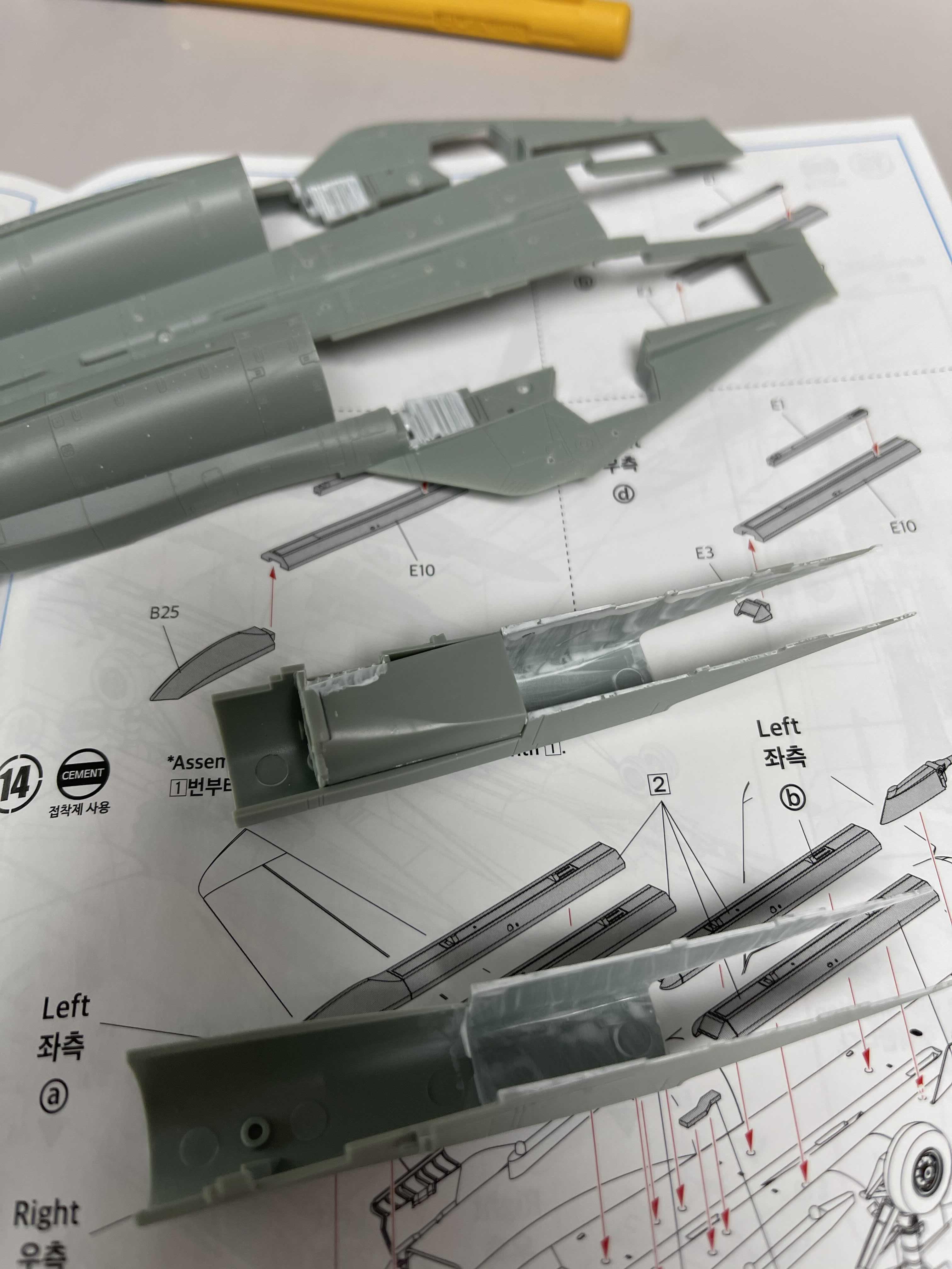 몇 년전에 만들어 보던 슬램 이글 조차도 단차가 있어 이런 항공기류는 무조건 퍼티+도색이 필수라고 했었는데 최신 금형이라 그런지 단차나는 부분이 거의 없이 딱딱 조립되어 상당한 만족감을 주는 모델이다.