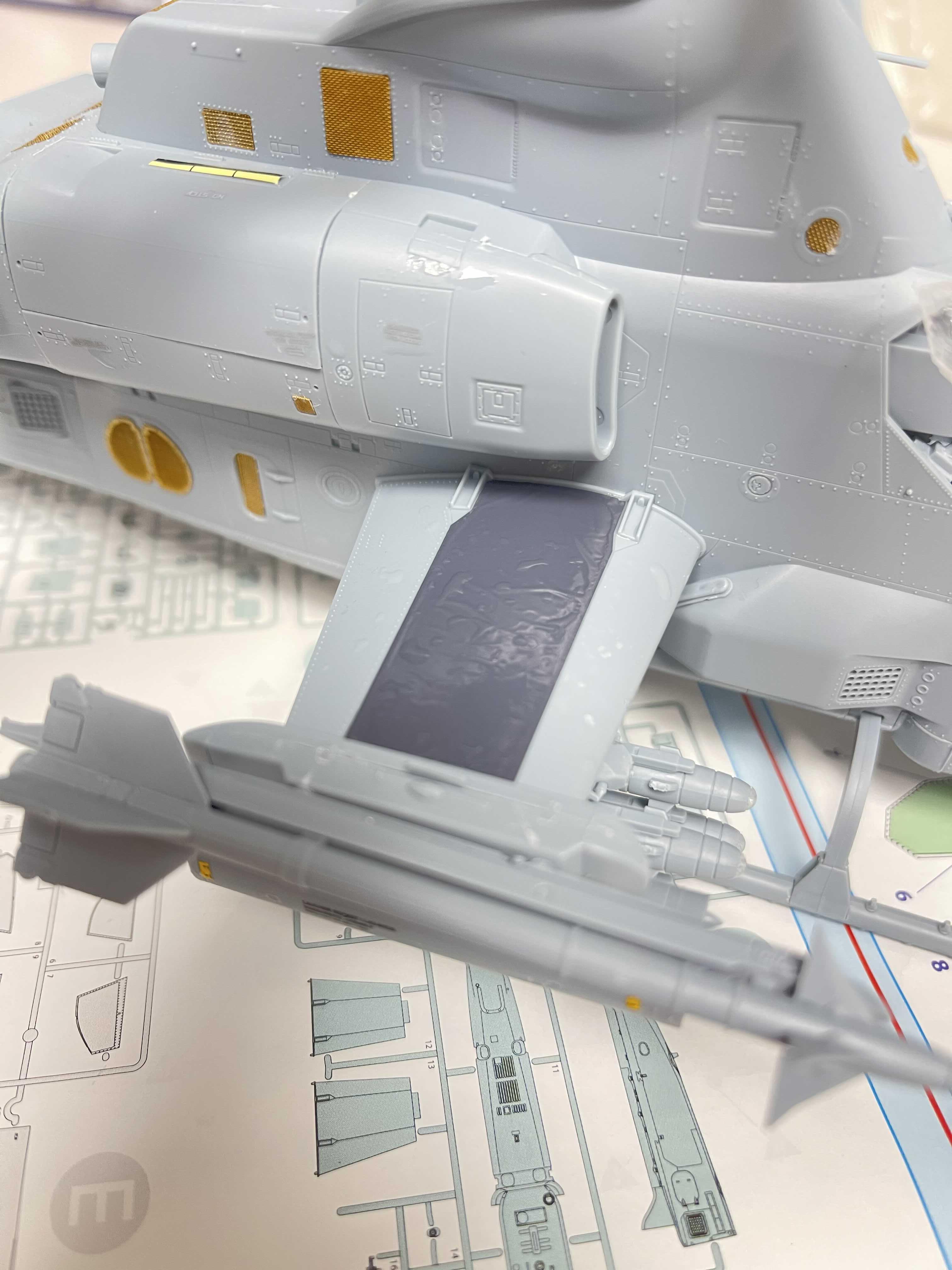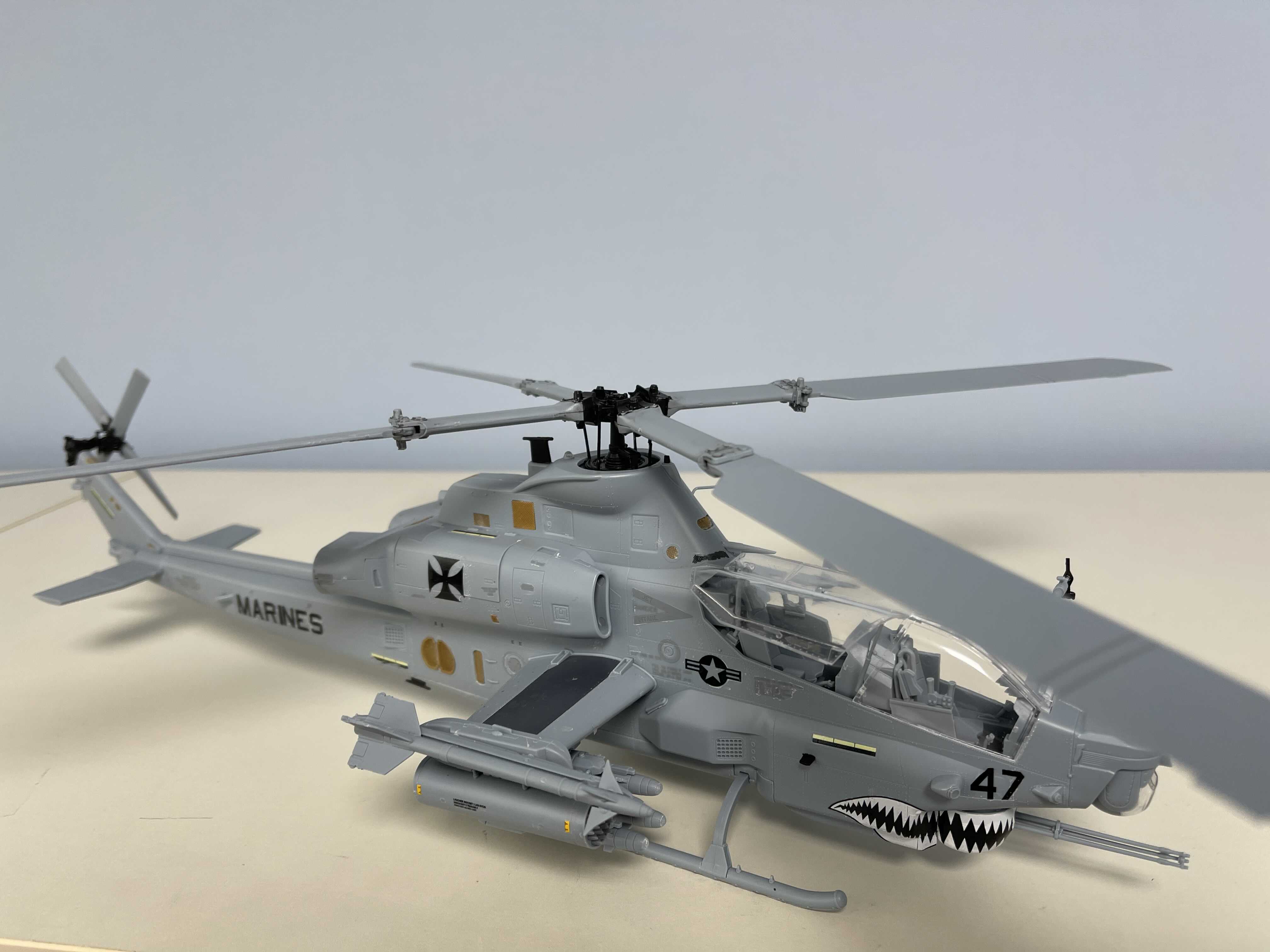 전체를 하기는 어렵고 기본 프로펠러 로터만 검정색으로 도색하고 중요 포인트인 벌컨의 이빨 부분은 흰색으로 칠하고 데칼을 붙여 주었다. 그래도 이 정도만 해 놓아도 꽤 만족스러워 보이긴 한다.
