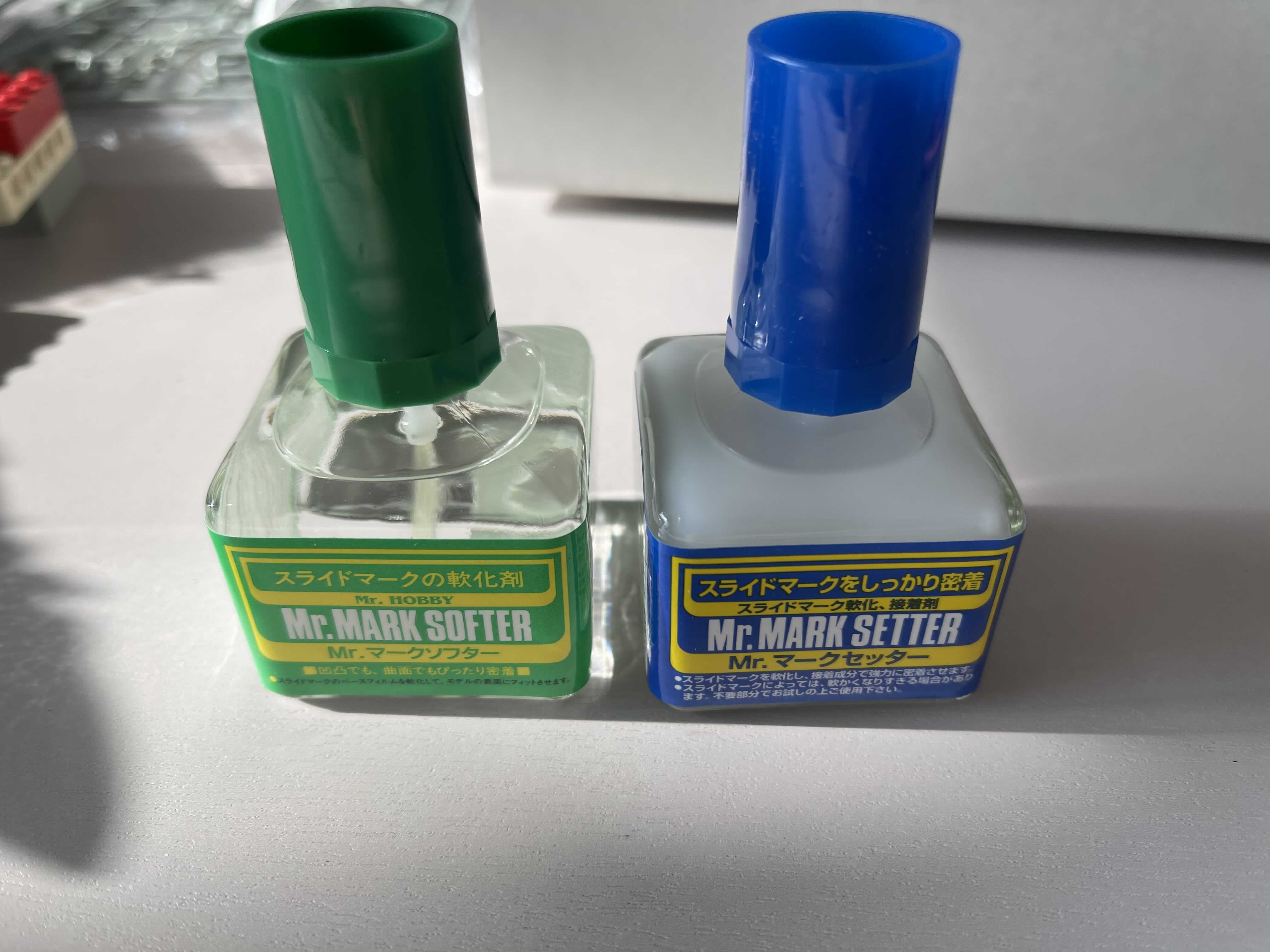 세터는 접착력을 높여지는 일종의 물풀이고 소프터는 데칼을 녹여서 표면에 늘려 붙이는 역할을 한다.