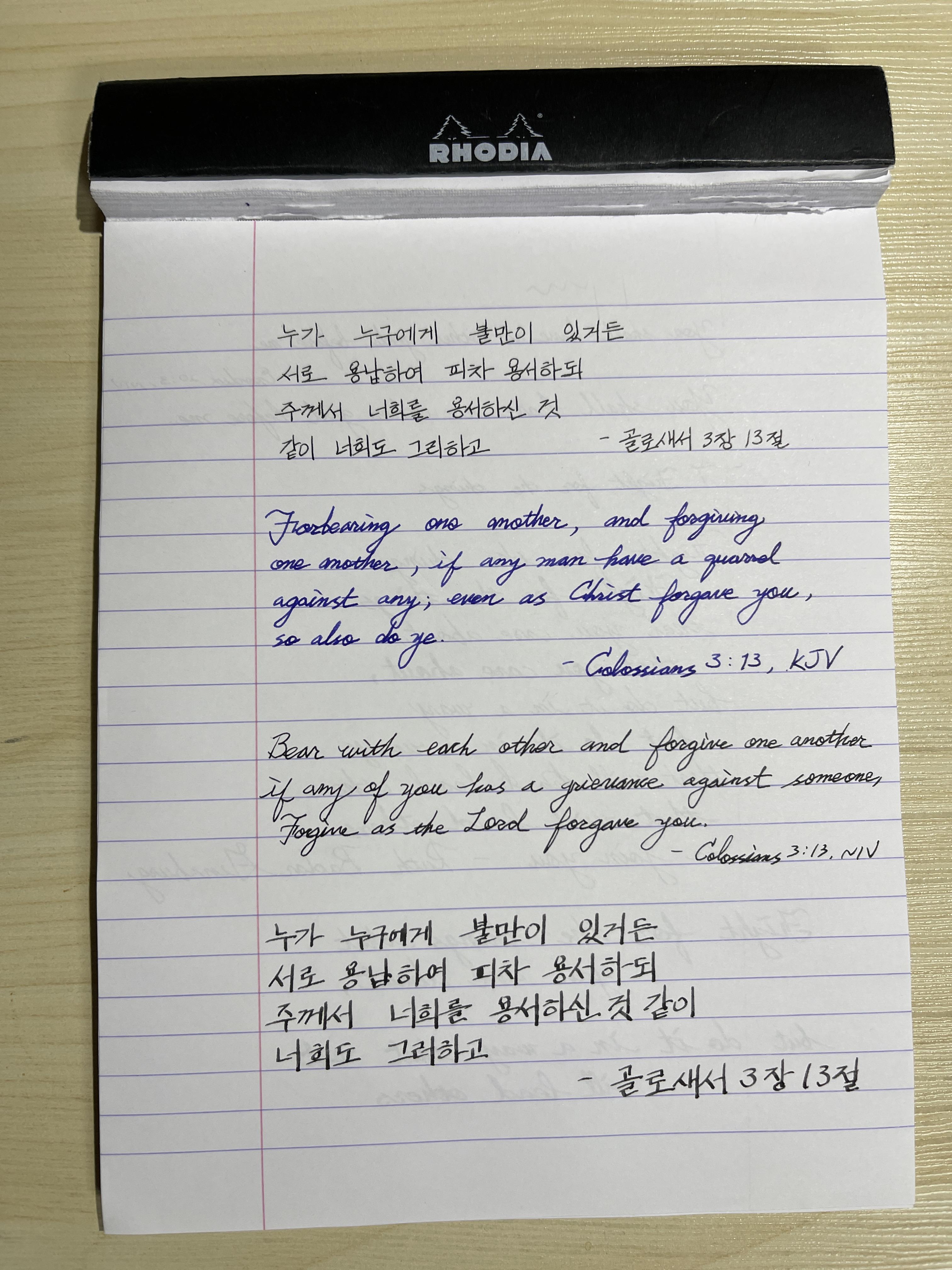-골로새서 3장 13절Forbearing one another, and forgiving one another, if any man have a quarrel against any; even as Christ forgave you, so also do ye.
