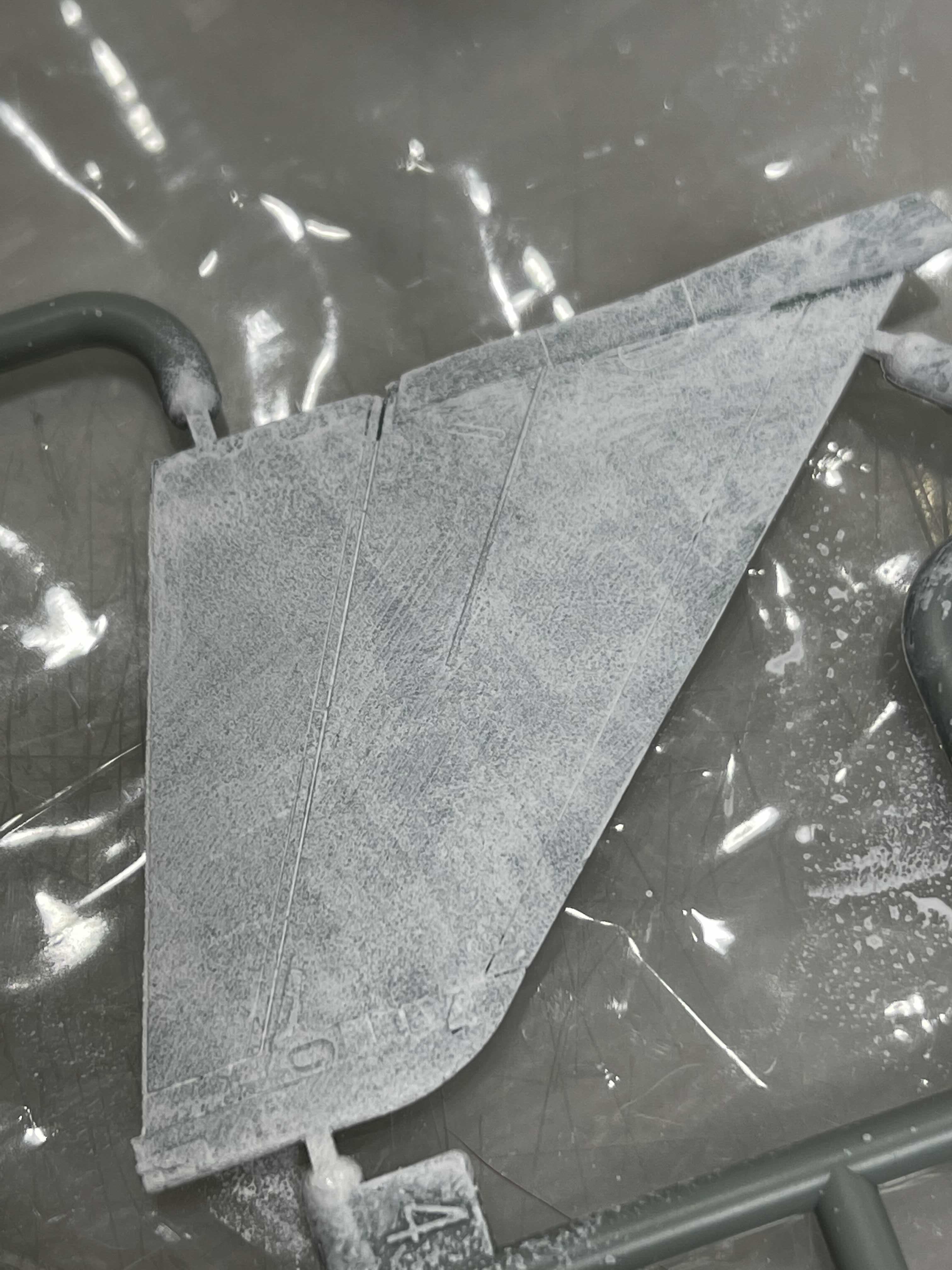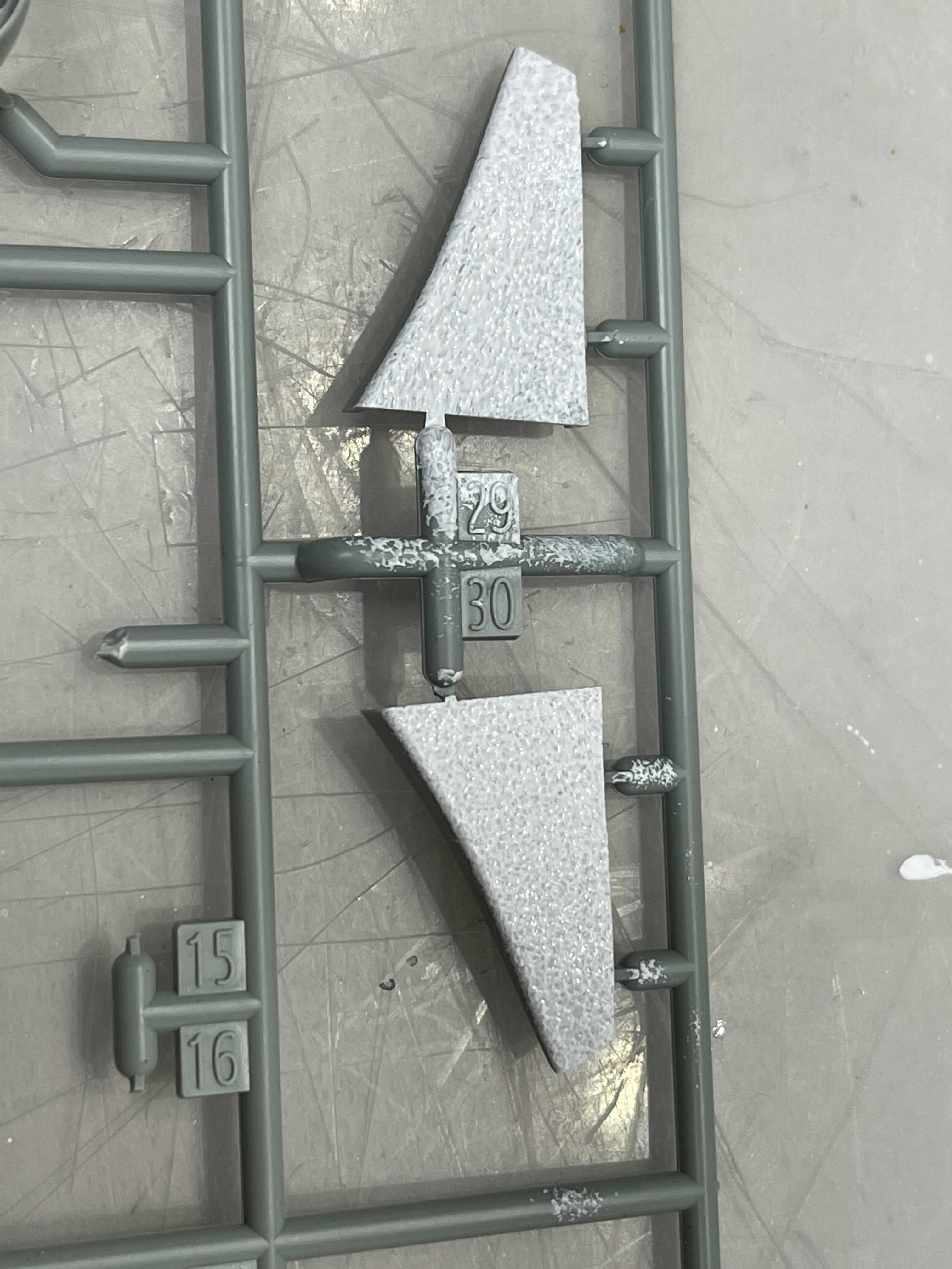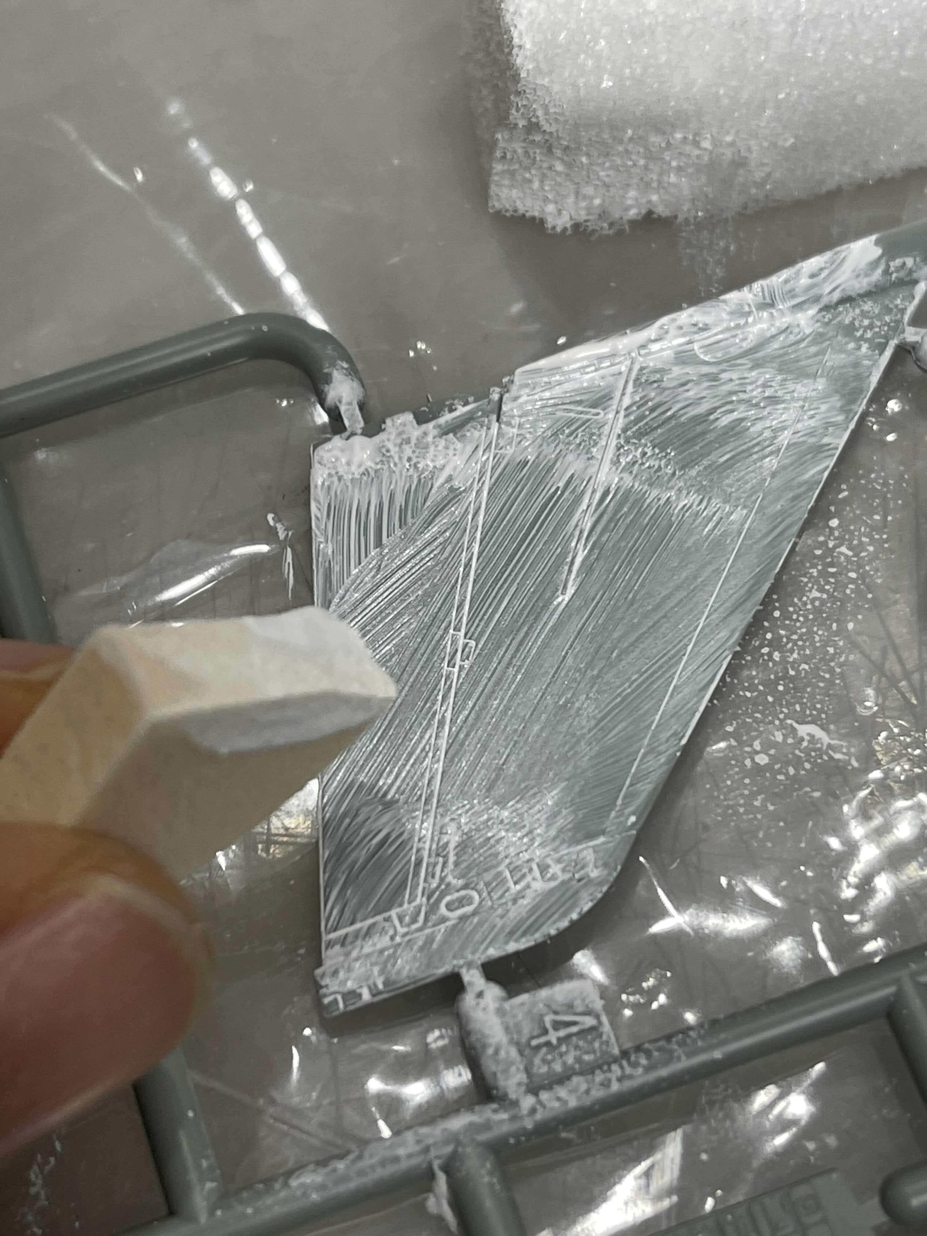열심히 발라가며 두드렸던 결과다. ㅠ.ㅠ 아 하얗게 되긴 했는데 표면이 엄청나게 거칠다. 나중에 녹슨거 웨더링 할 때 쓸만할 비주얼이다... 충격