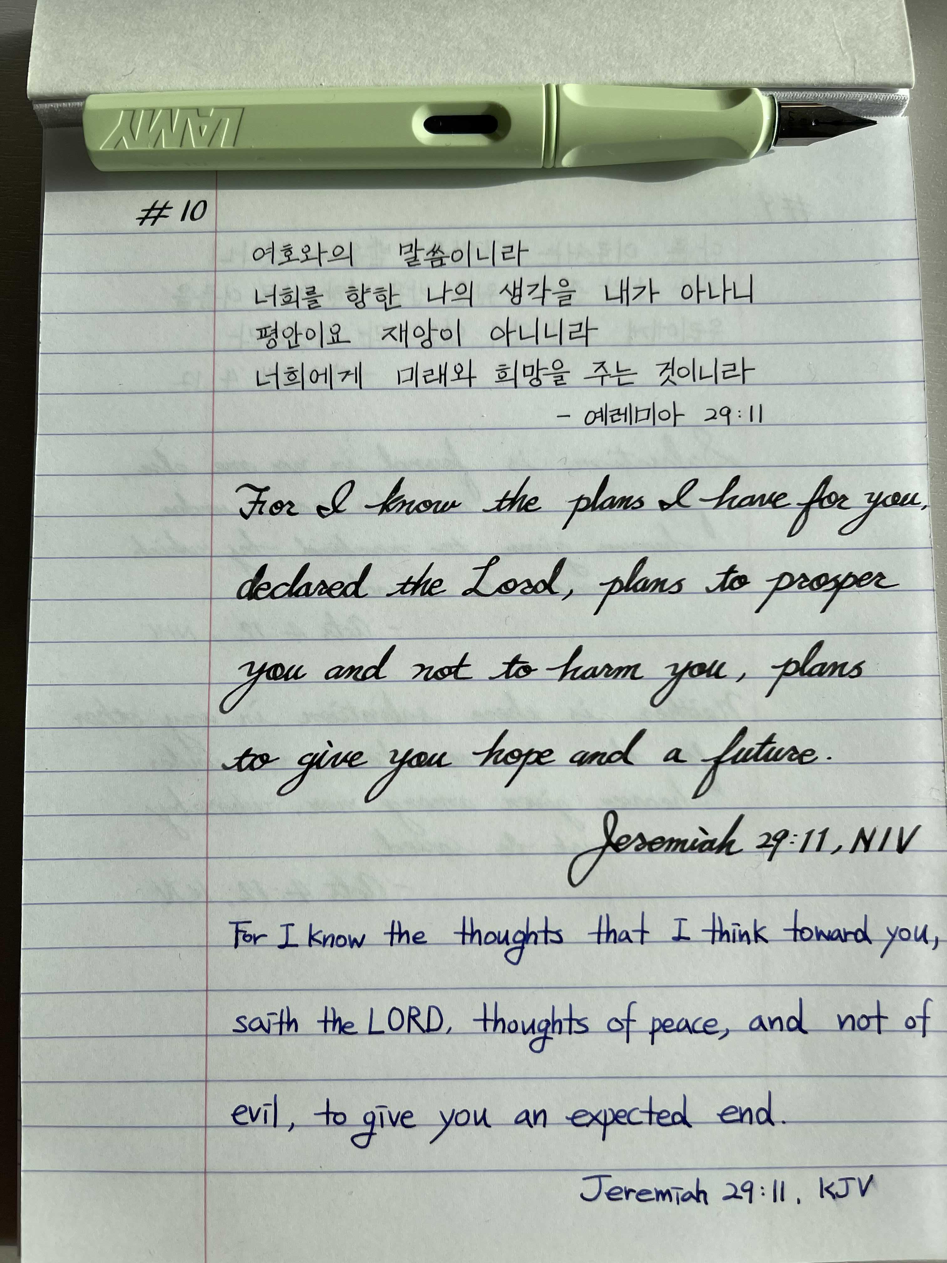 여호와의 말씀이니라 너희를 향한 나의 생각을 나가 아나니 평안이요 재앙이 아니니라 너희에게 미래와 희망을 주는 것이니라