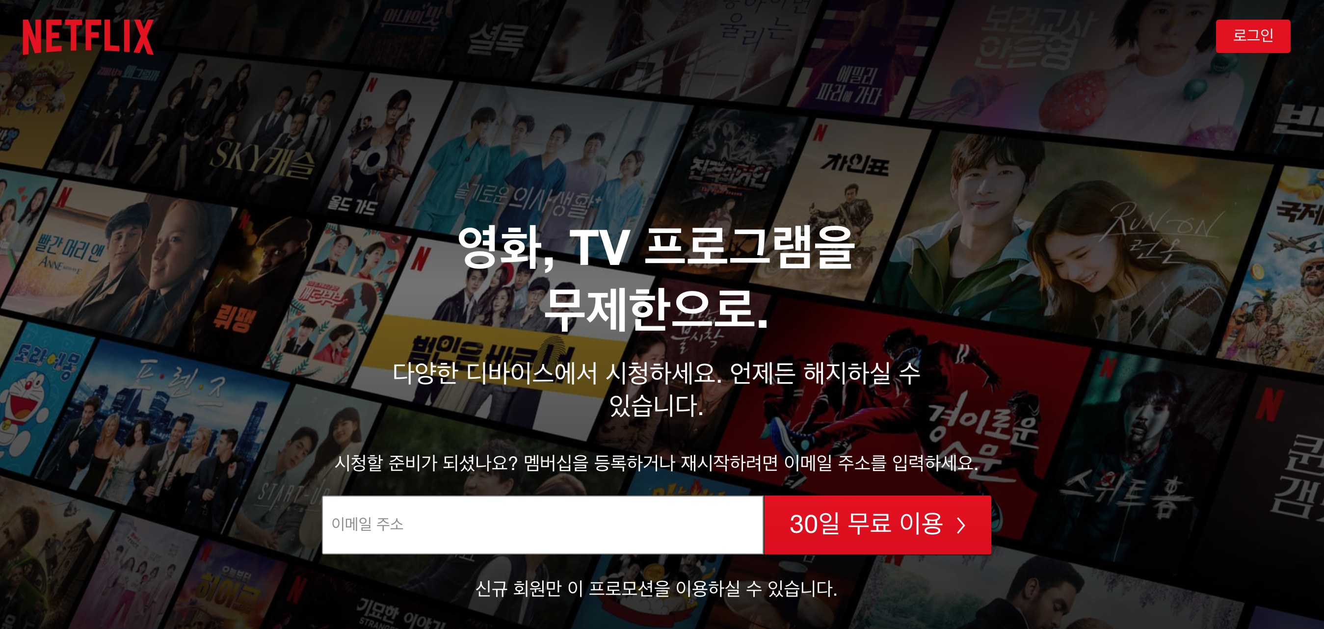 여전히 30일 무료 이용 프로모션을 하고 있다! 우선 넷플릭스 홈페이지에 접속하면 월 9,500원 부터 시작한다고 안내하고 있다.