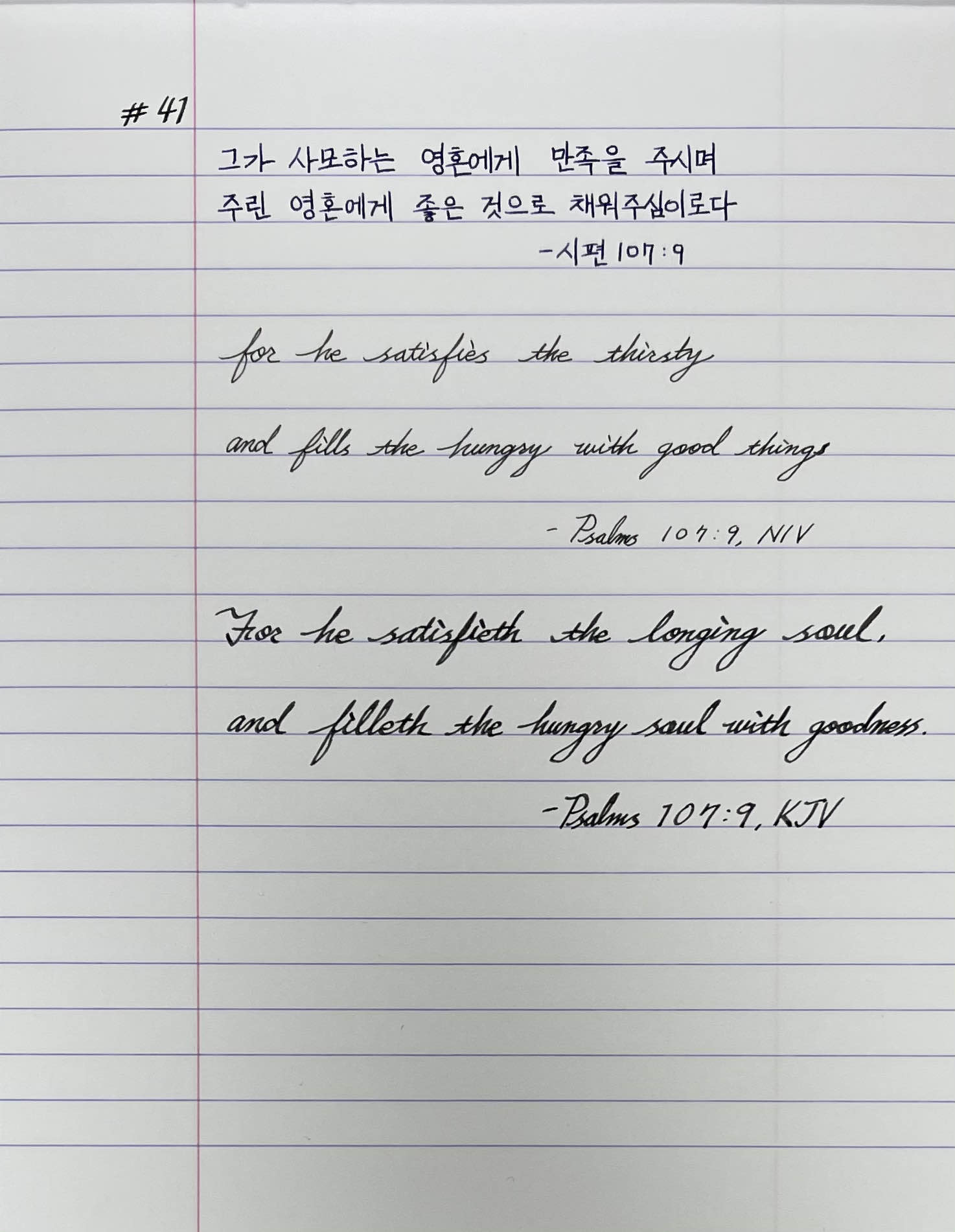 그가 사모하는 영혼에게 만족을 주시며 주린 영혼에게 좋은 것으로 채워주심이로다