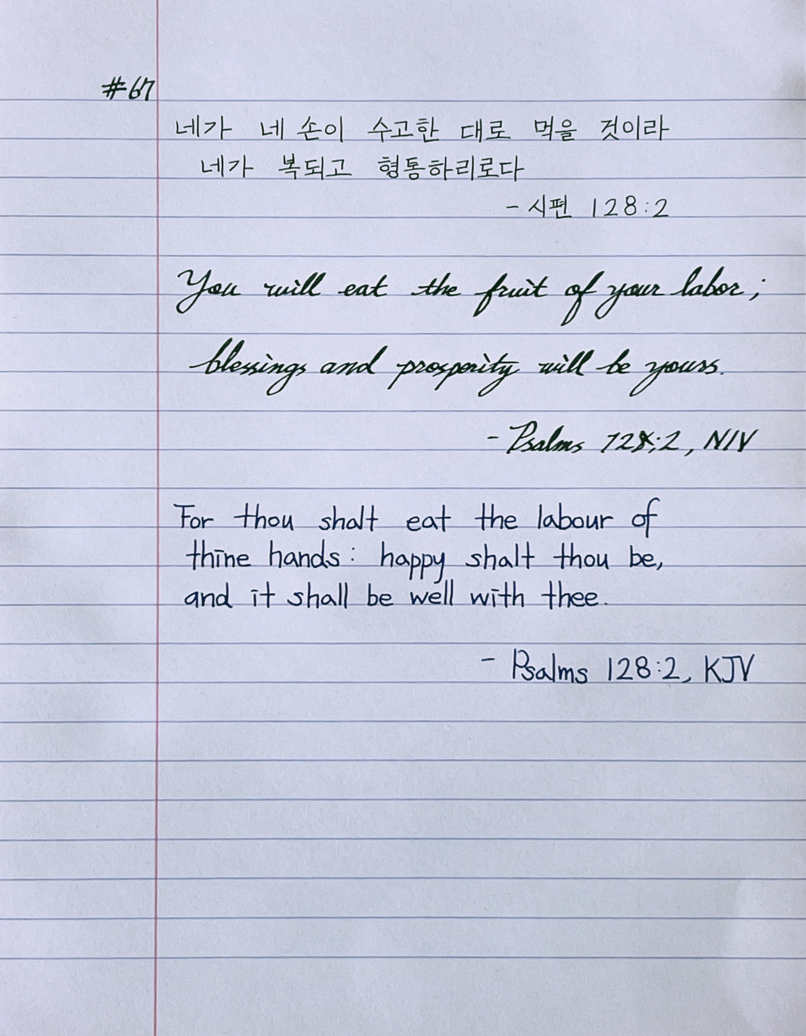 네가 네 손이 수고한 대로 먹을 것이라 네가 복되고 형통하리로다