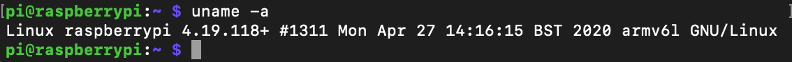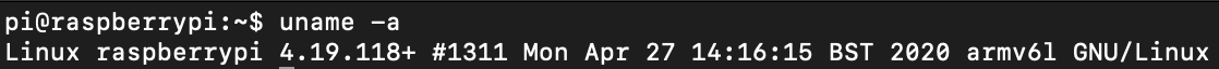 여전히 4.19.118+ 사실 속은 것은 아니고 업데이트를 했다면 재시작을 해 주어야 한다. sudo reboot 명령으로 재시작을 하고 다시 터미널에 접속해 확인하면 다음과 같이 업데이트 된 것을 볼 수 있다.