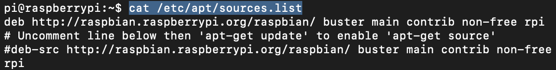 라즈베리파이 apt 패키지 소스 정보 현재는 http://raspbian.raspberrypi.org/raspbian이 Source 인 것을 알 수 있다.