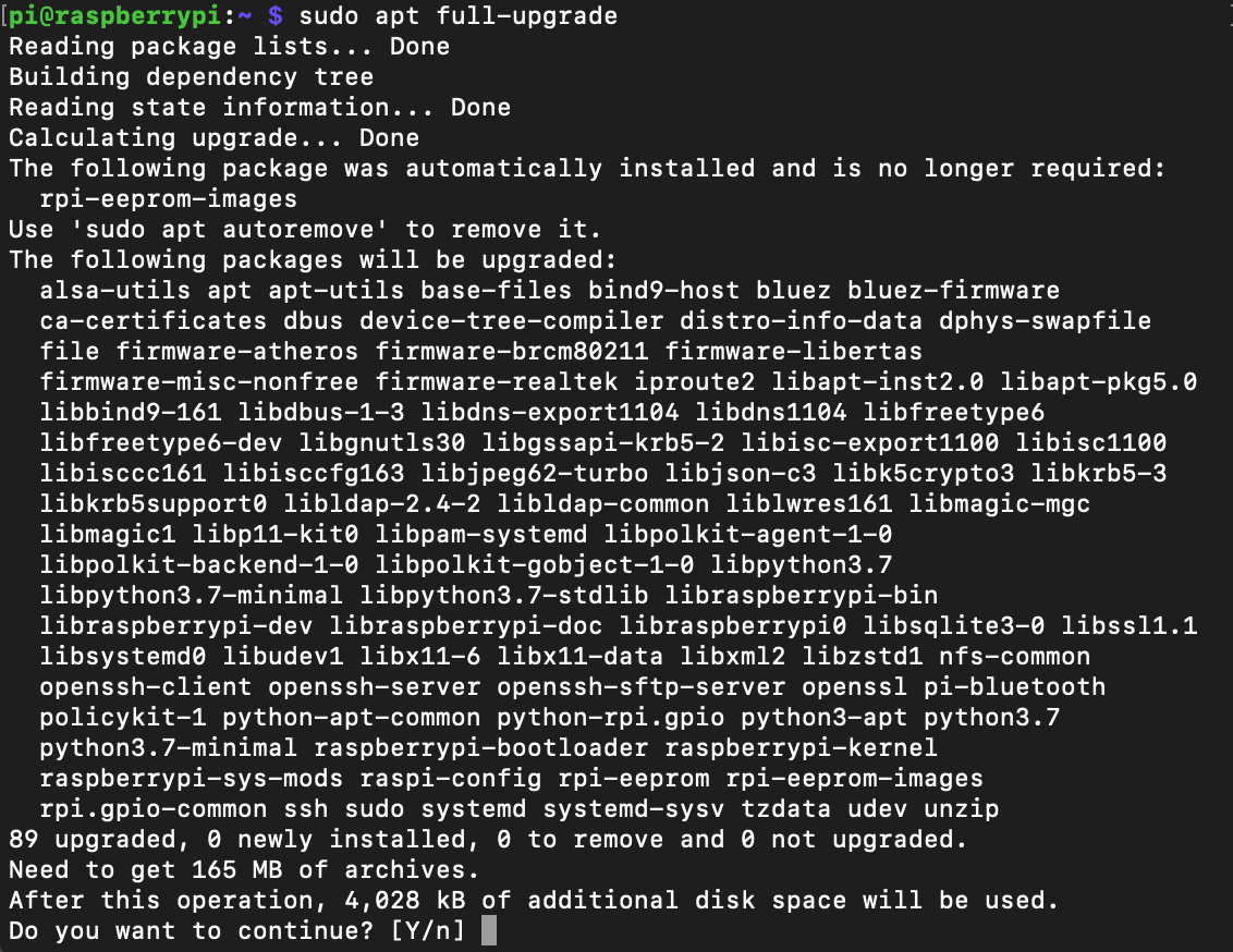 패키지 정보 업데이트 full-upgrade 명령은 Source에 대응하는 모든 소프트웨어를 최선 버젼으로 변경한다.