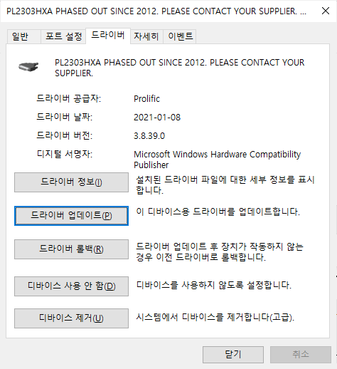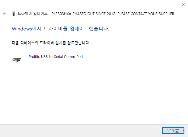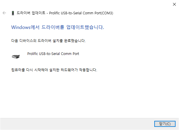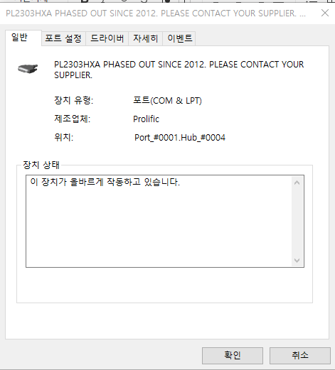 드라이버가 업데이트 되었다고 나오고 Profilfic USB-to-Serial Comm Port 라는 말도 나오고 하니 정상적으로 설치된것 처럼 보였지만,