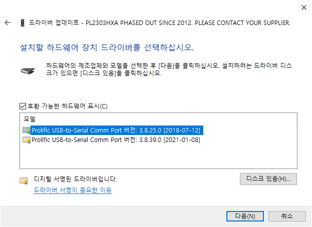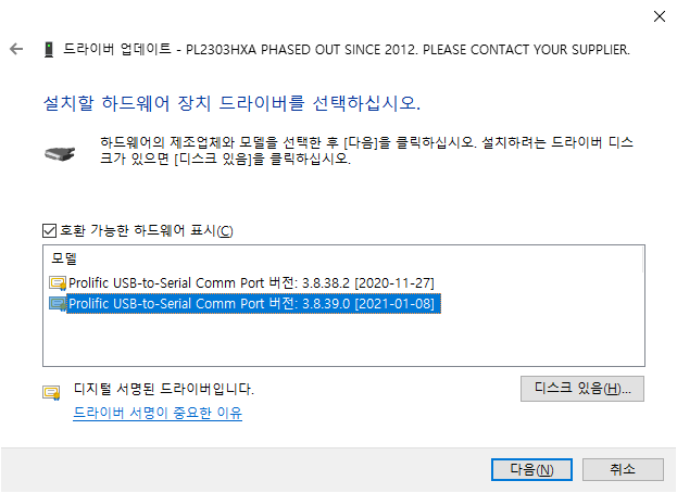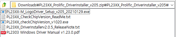 이 페이지에서 제공하는 파일이 2021/03/03에 업로드 되었고 PL23xx 계열 통합 드라이버처럼 보이므로, 이 파일을 설치해 보기로 했다.