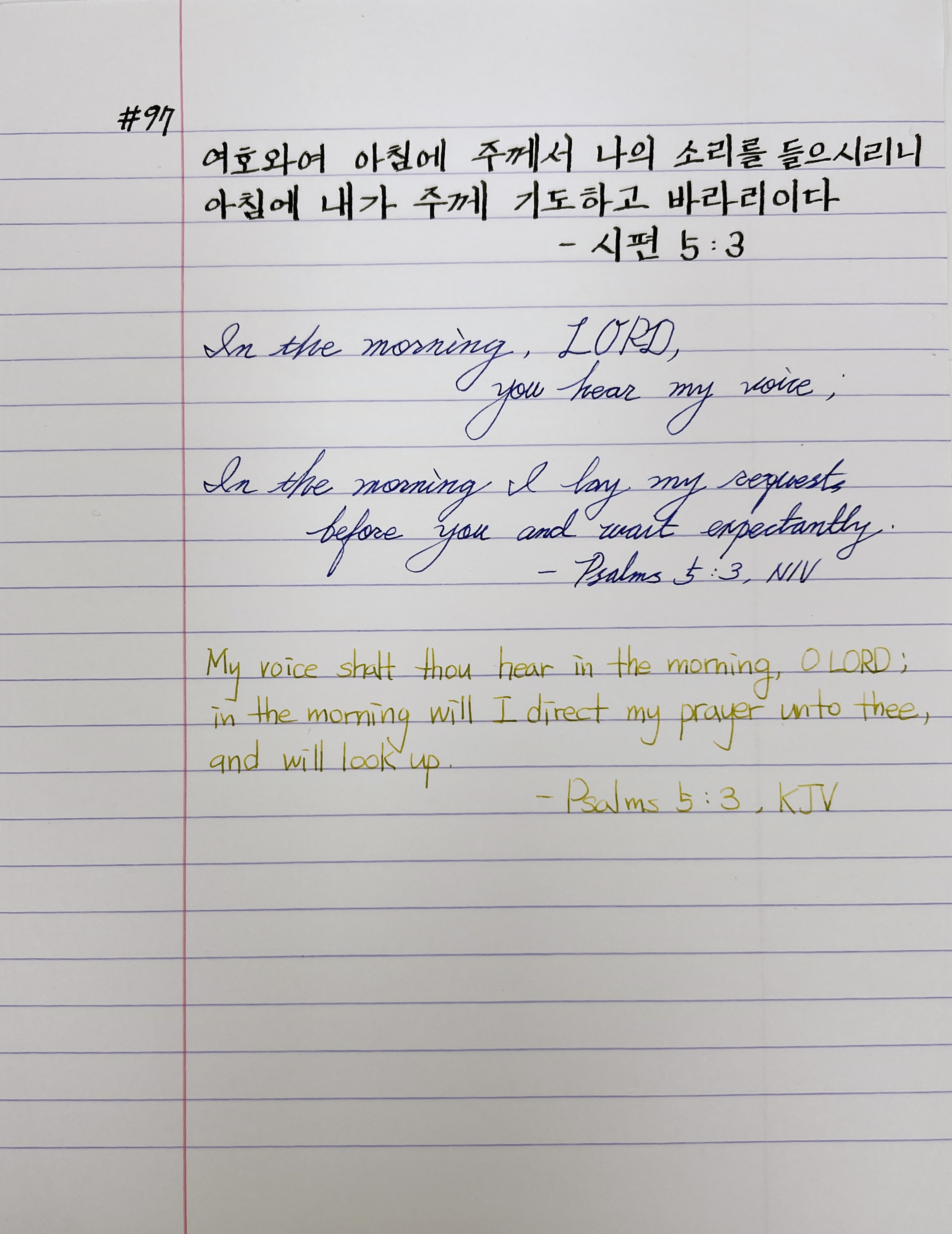 여호와여 아침에 주께서 나의 소리를 들으시리니 아침에 내가 주께 기도하고 바라리이다