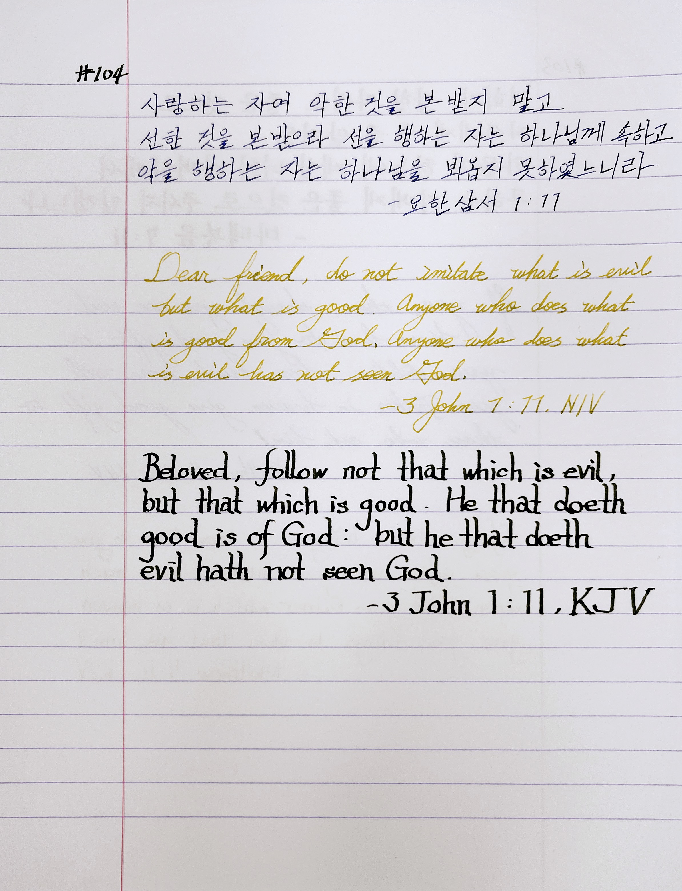 사랑하는 자여 악한 것을 본받지 말고 선한 것을 본받으라 선을 행하는 자는 하나님께 속하고 악을 행하는 자는 하나님을 뵈옵지 못하였느니라