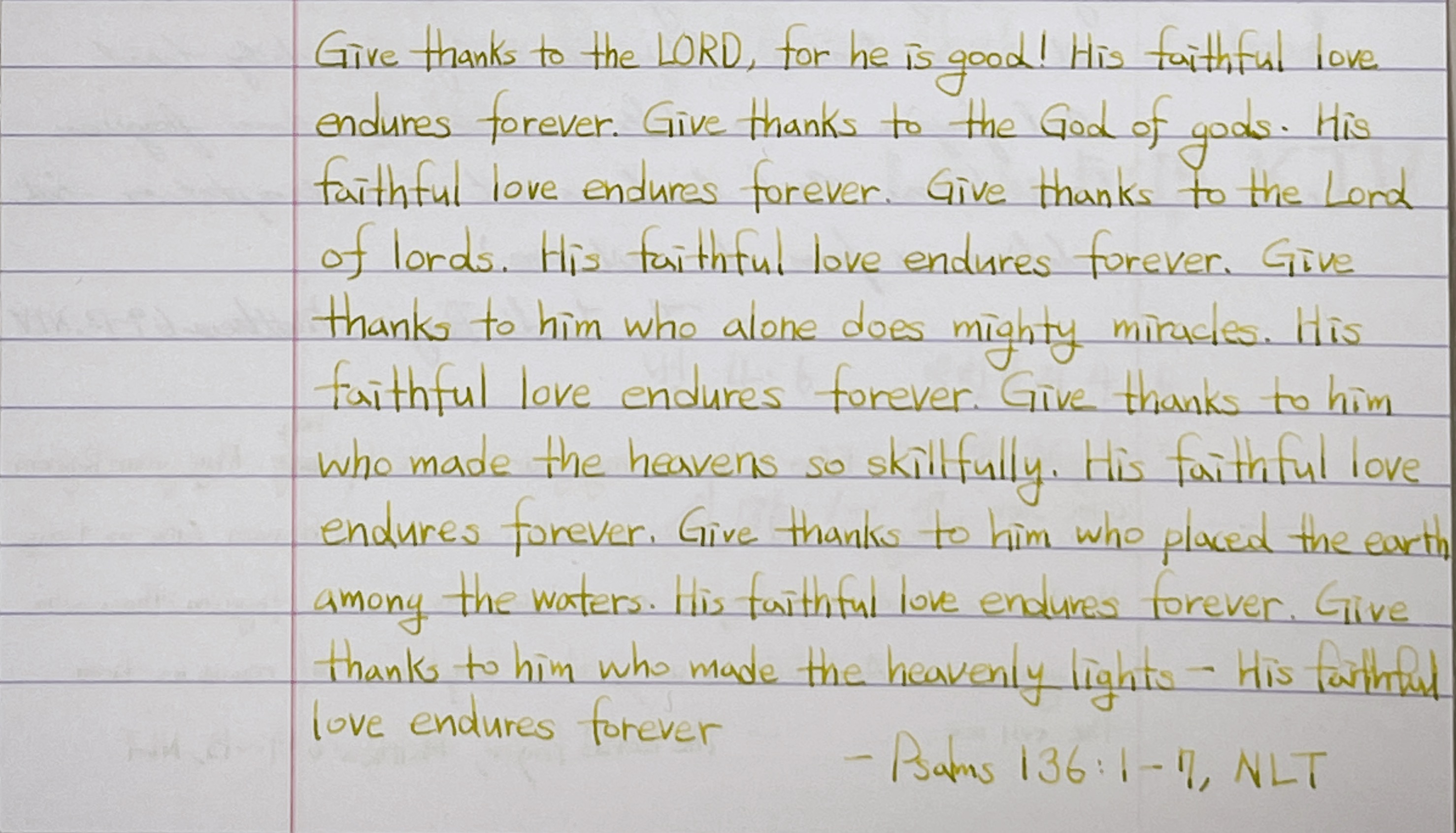 1 Give thanks to the LORD, for he is good. His love endures forever.