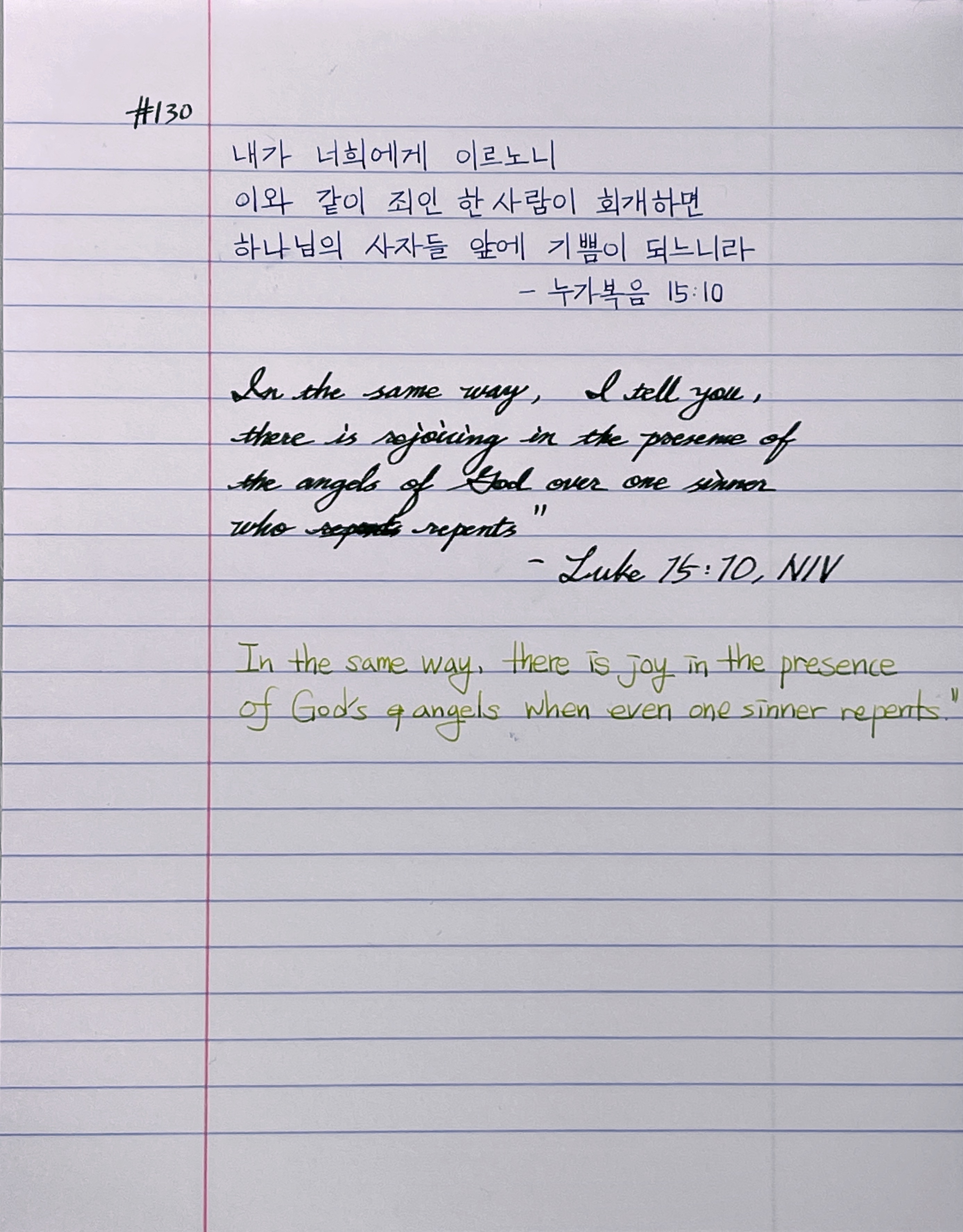 내가 너희에게 이르노니 이와 같이 죄인 한 사람이 회개하면 하나님의 사자들 앞에 기쁨이 되느니라