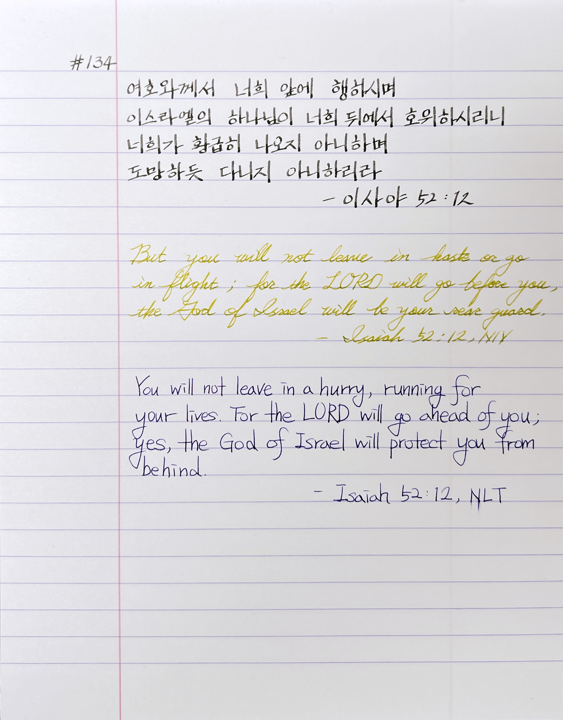 여호와께서 너희 앞에서 행하시며 이스라엘의 하나님이 너희 뒤에서 호위하시리니 너희가 황급히 나오지 아니하며 도망하듯 다니지 아니하리라