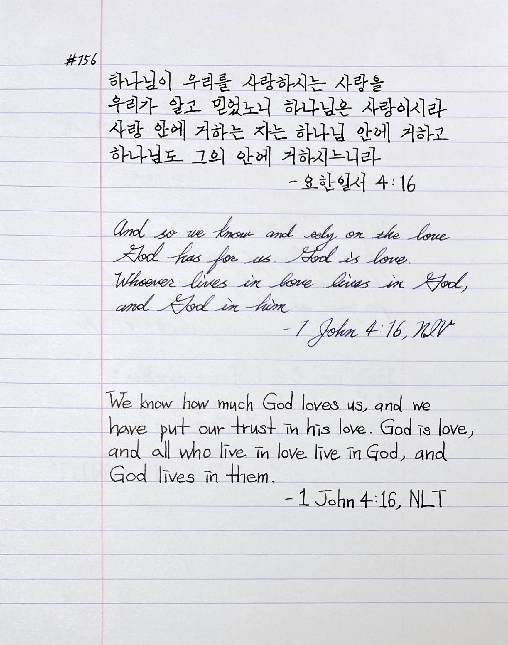 하나님이 우리를 사랑하시는 사랑을 우리가 알고 믿었노니 하나님은 사랑이시라 사랑 안에 거하는 자는 하나님 안에 거하고 하나님도 그의 안에 거하시느니라