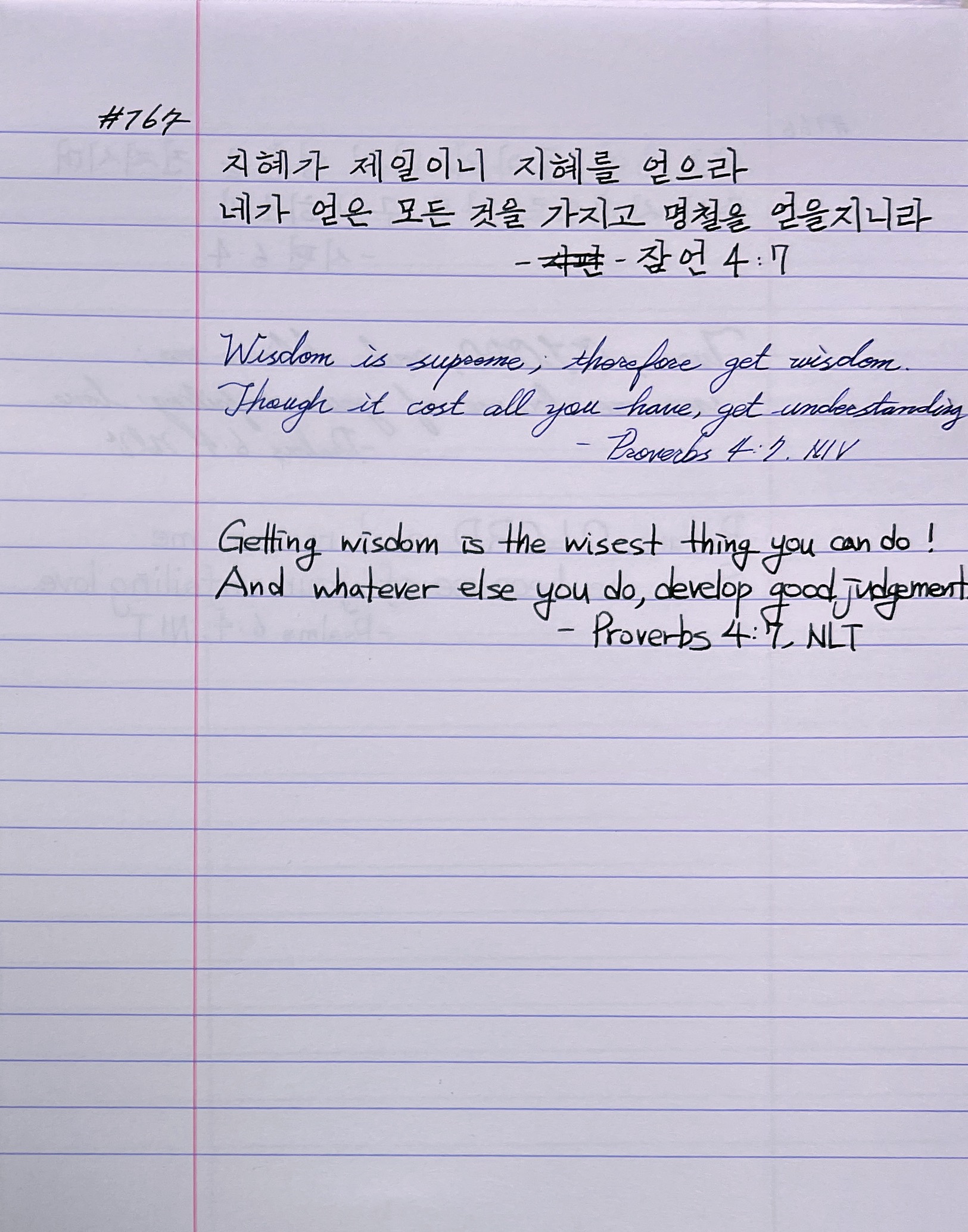 지혜가 제일이니 지혜를 얻으라 네가 얻은 모든 것을 가지고 명철을 얻을지니라