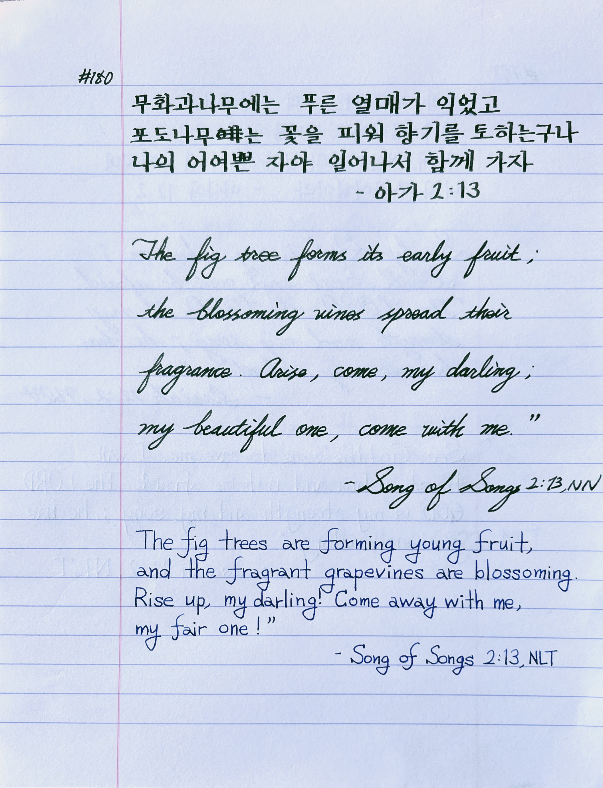 무화과나무에는 푸른 열매가 익었고 포도나무는 꽃을 피워 향기를 토하는구나 나의 사랑, 나의 어여쁜 자야 일어나서 함께 가자