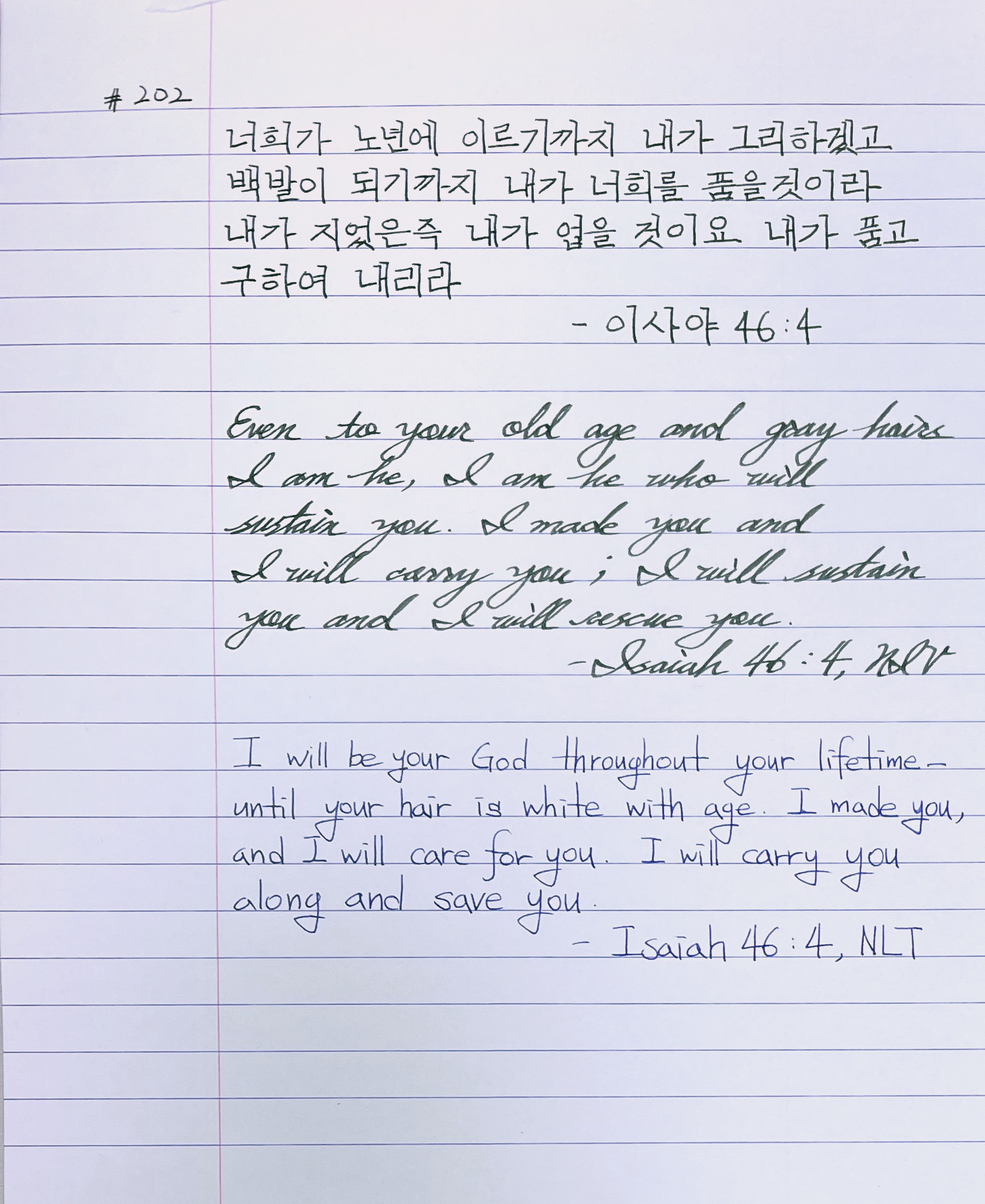 너희가 노년에 이르기까지 내가 그리하겠고 백발이 되기까지 내가 너희를 품을 것이라 내가 지었은즉 내가 업을 것이요 내가 품고 구하여 내리라