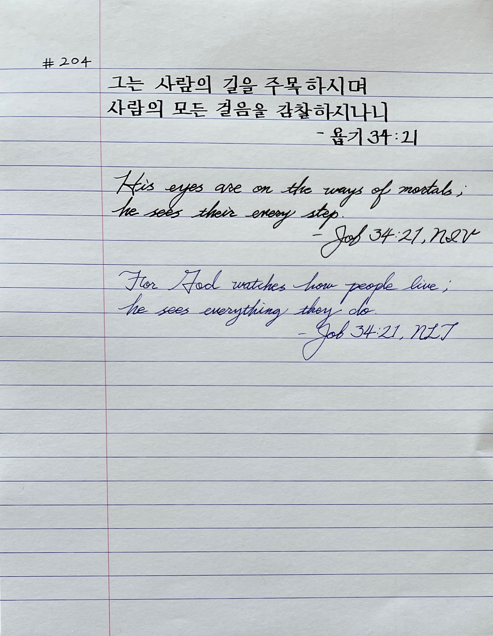 그는 사람의 길을 주목하시며 사람의 모든 걸음을 감찰하시나니 _욥34:21