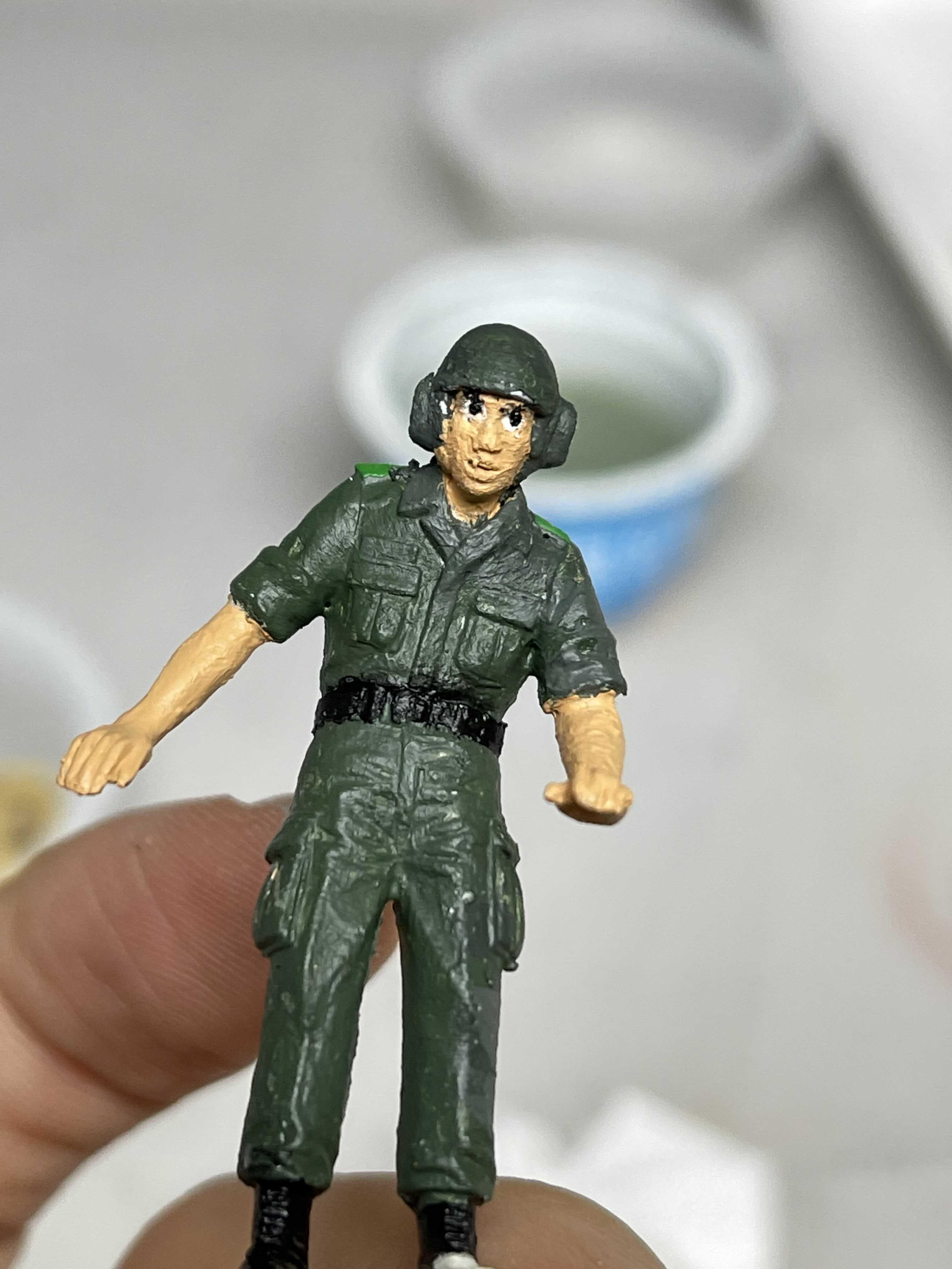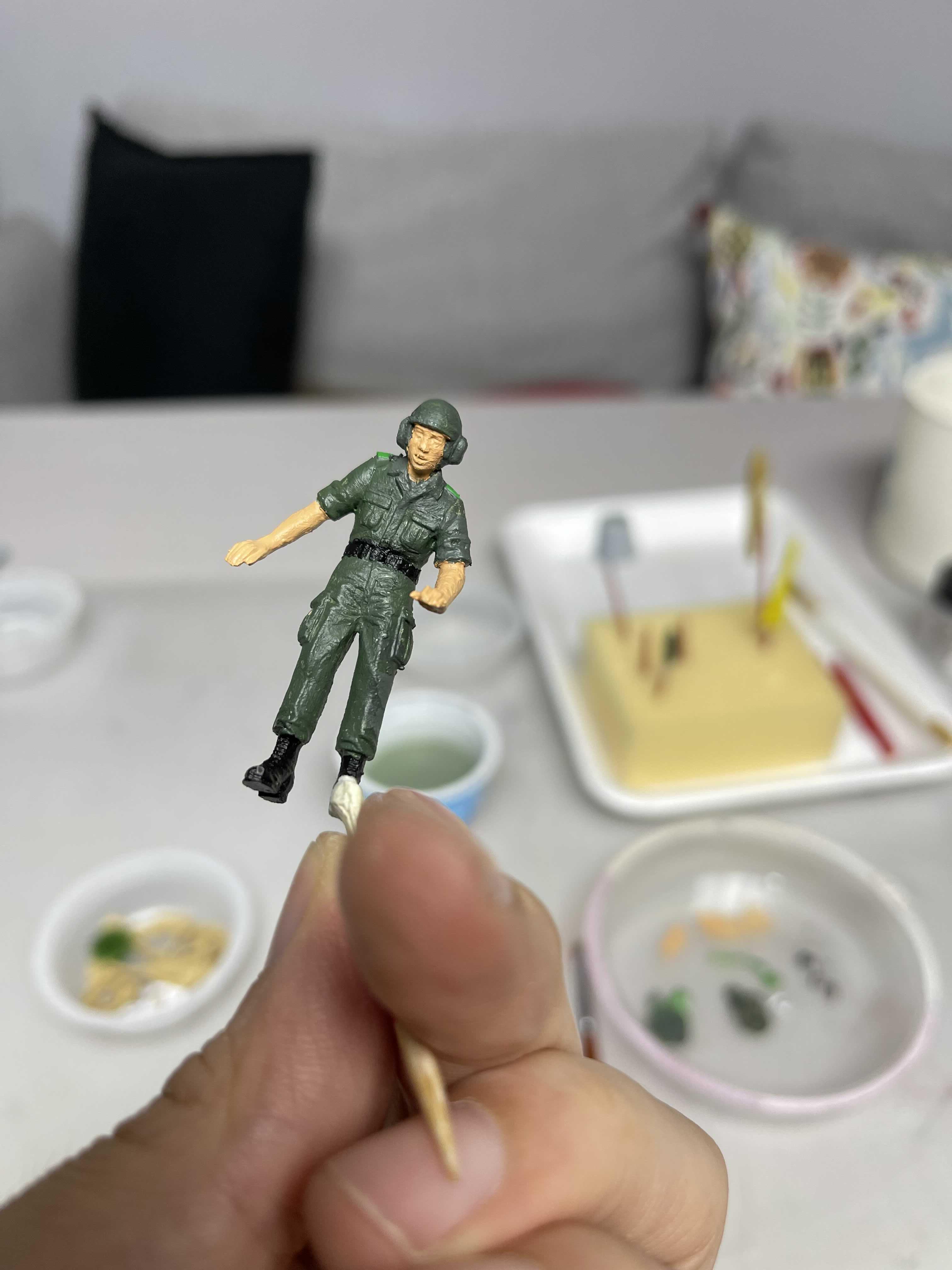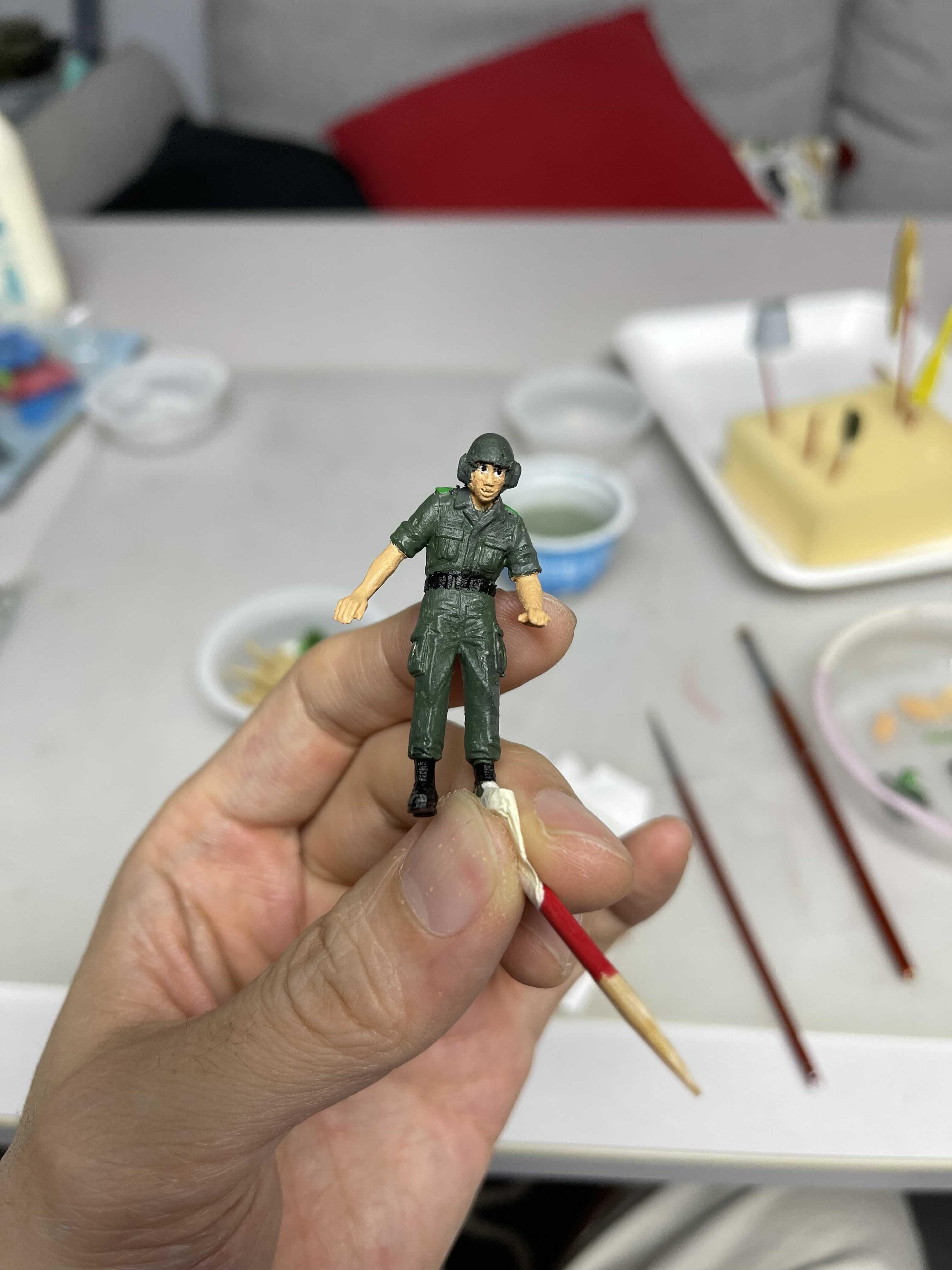 피부색과 군화 그리고 벨트를 칠해주고 나니 이제 좀 뭔가 군인 같은데, 저 덕지 덕지 발라진 거친 피부(?)는 참 답이 없다.