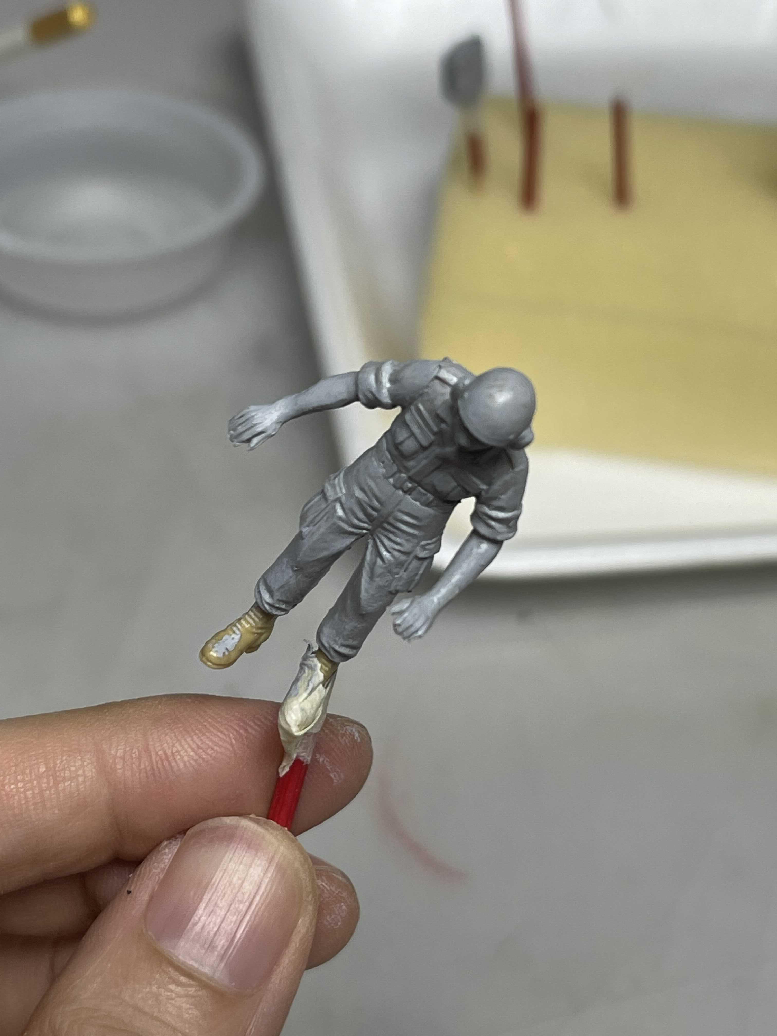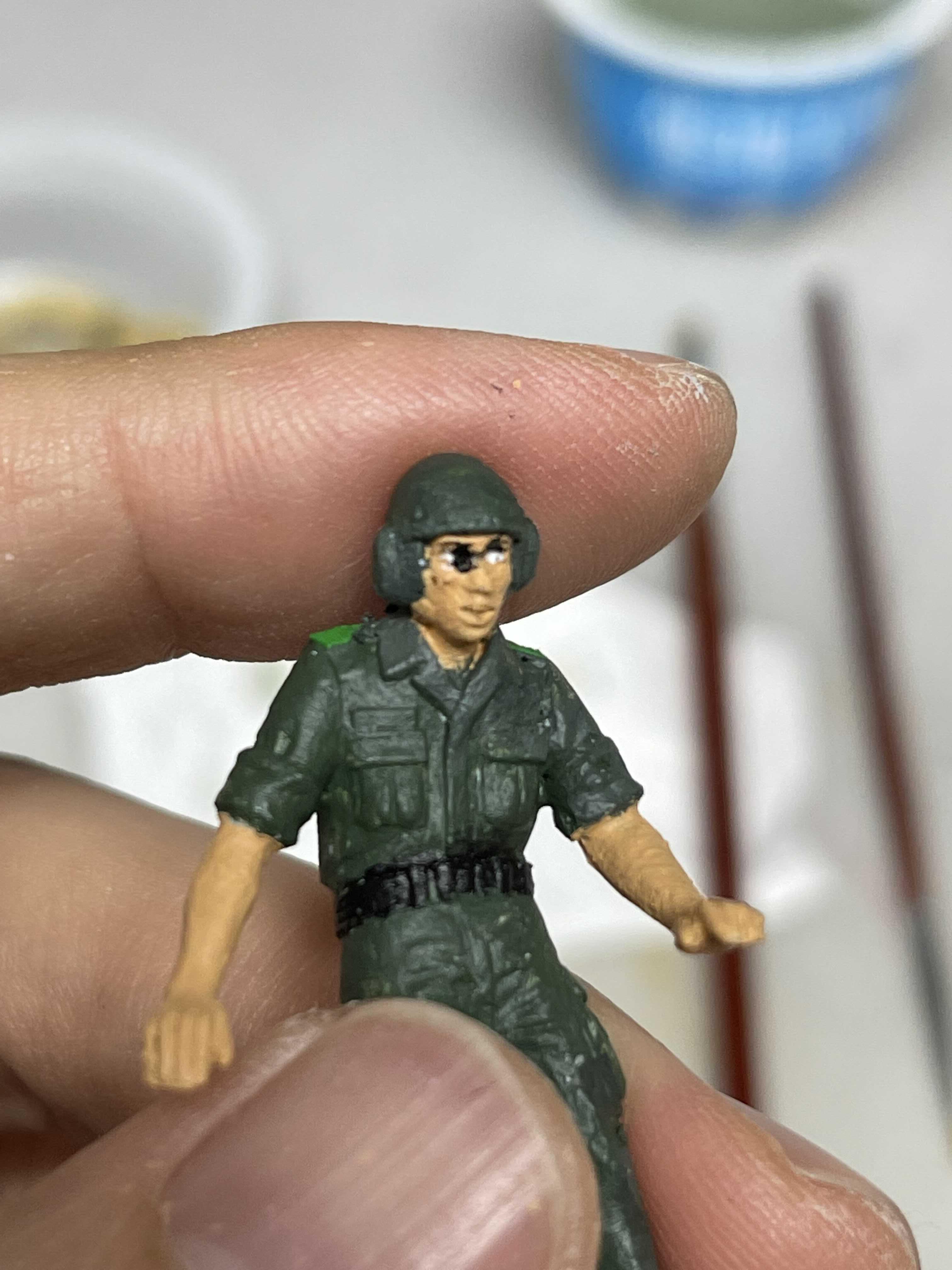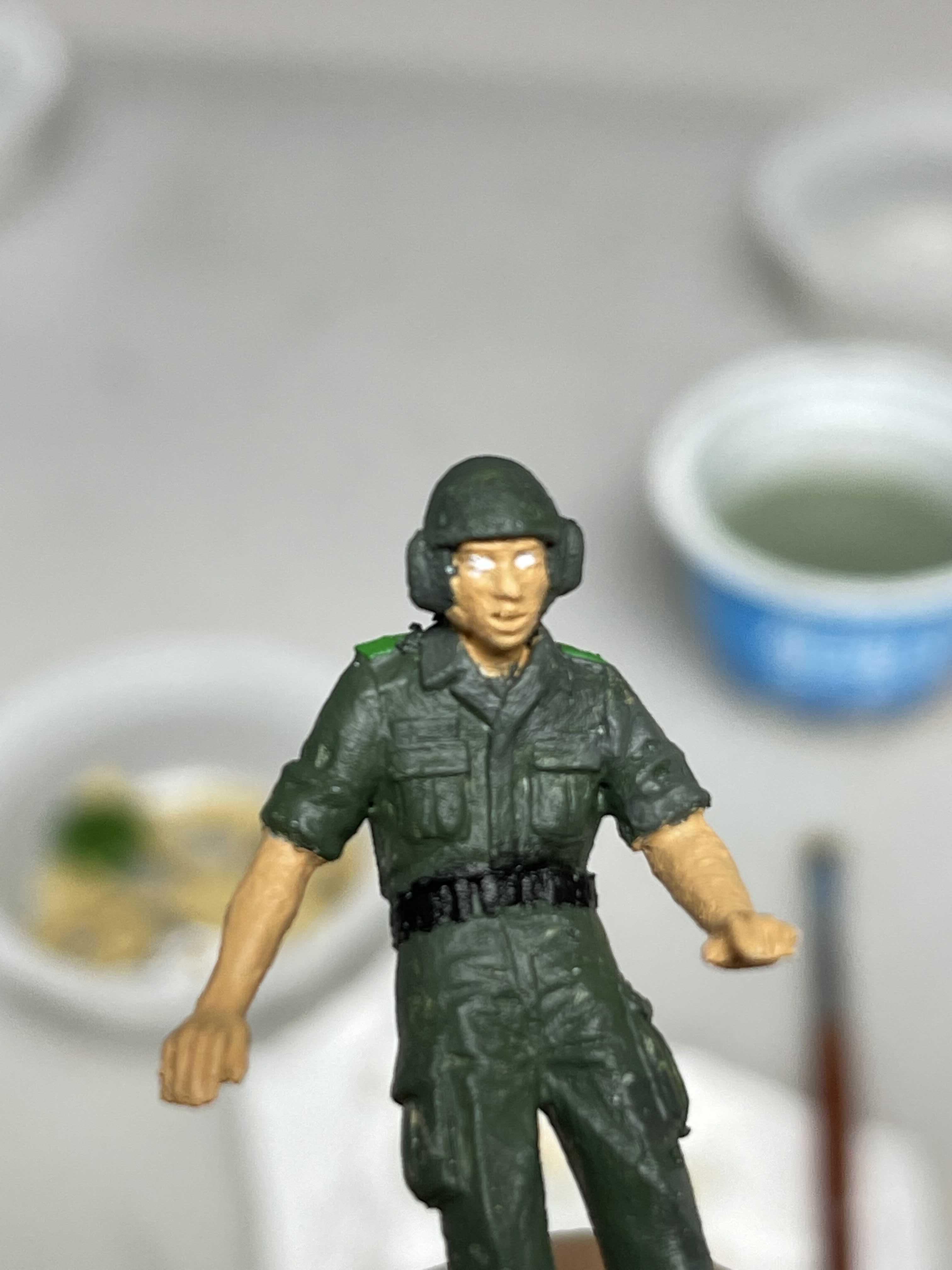 피부색과 군화 그리고 벨트를 칠해주고 나니 이제 좀 뭔가 군인 같은데, 저 덕지 덕지 발라진 거친 피부(?)는 참 답이 없다.
