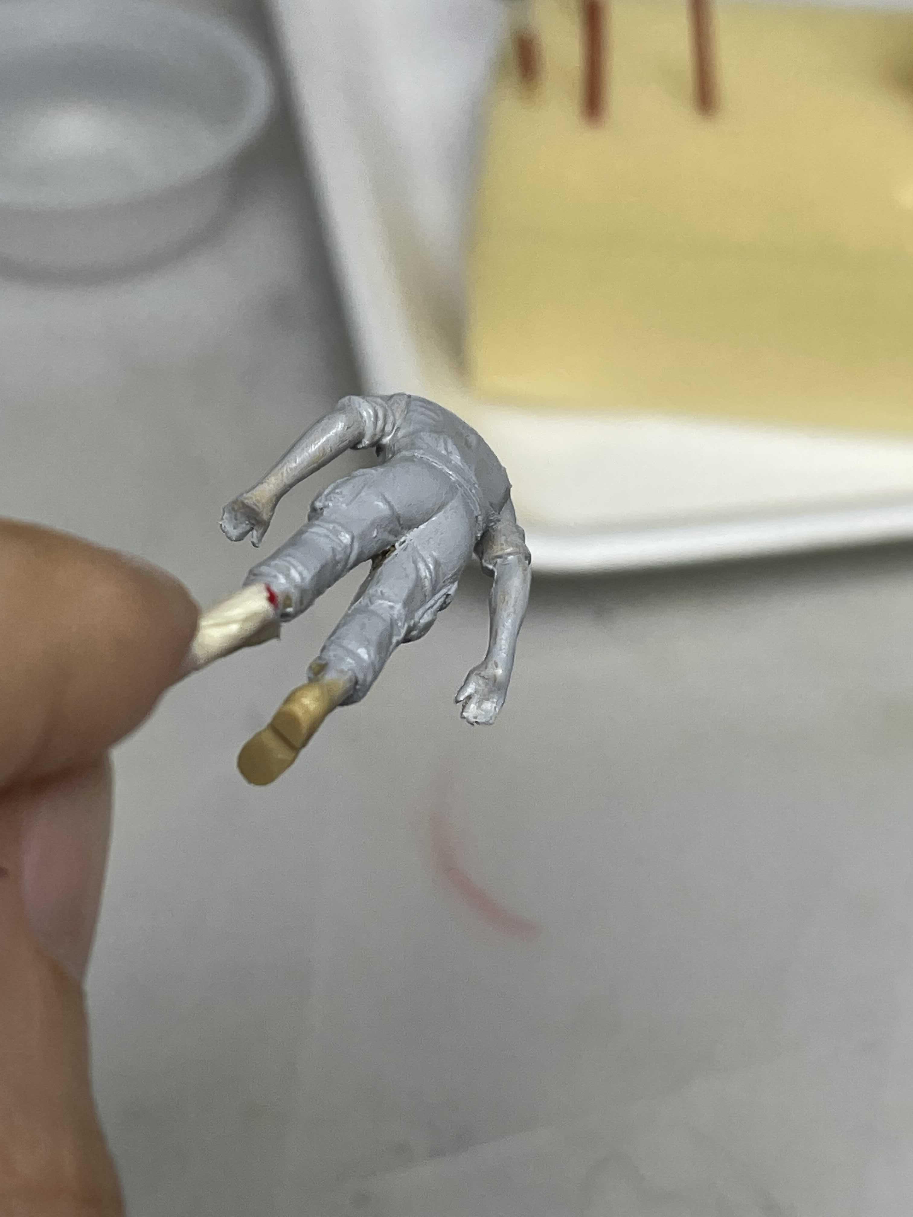 이번에 칠하면서 느낀거지만, 머리와 몸이 분리되어 있는 상태가 훨씬 칠하기 편하겠다는 생각이 들었다. 목이 옷깃에 뭍혀 있어서 다른 곳은건들지 않고 그 사이 공간을 칠하는게 보통일이 아니었다.