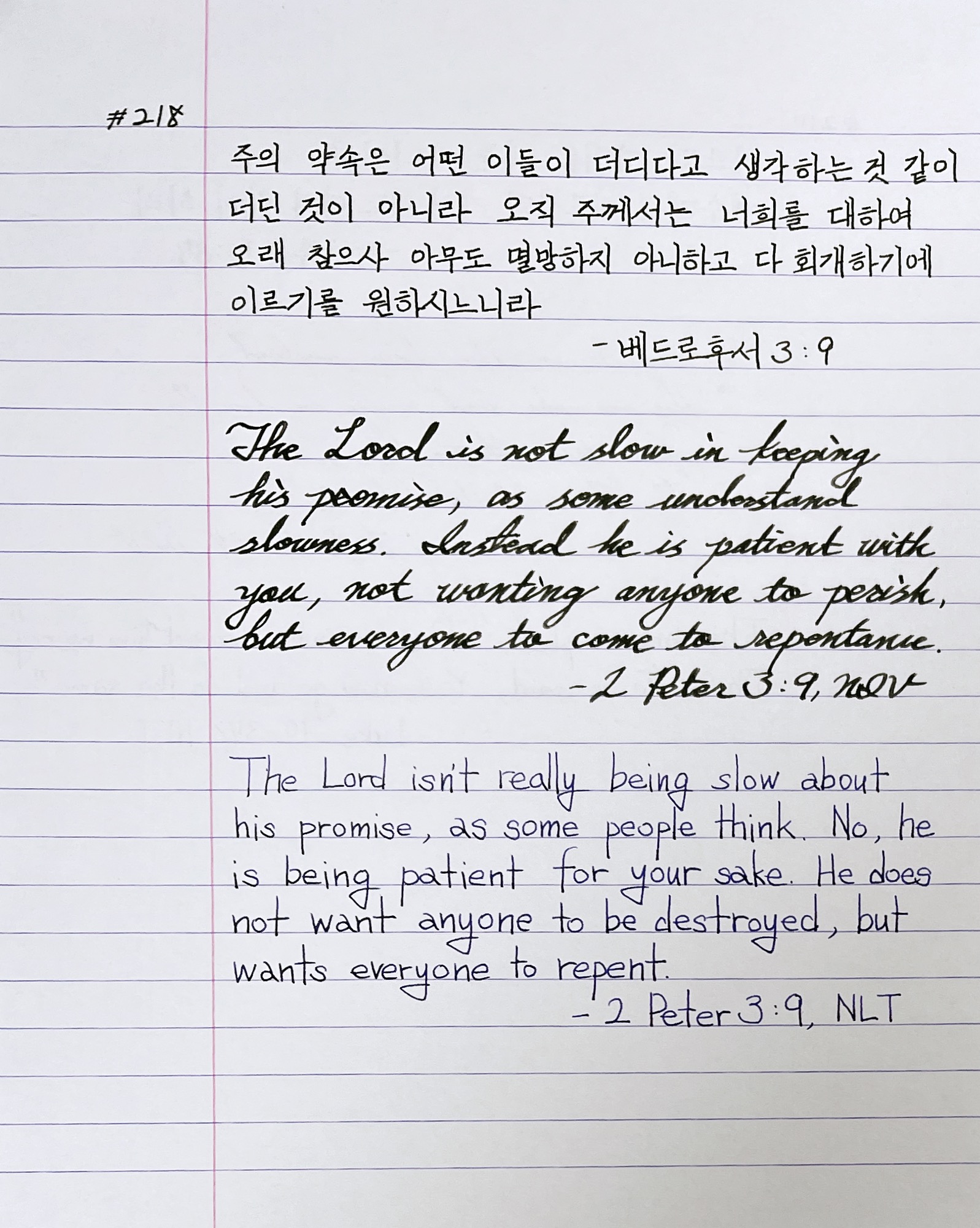 The Lord is not slow in keeping his promise, as some understand slowness. Instead he is patient with you, not wanting anyone to perish, but everyone to come to repentance. _2 Peter 3:9, NIV