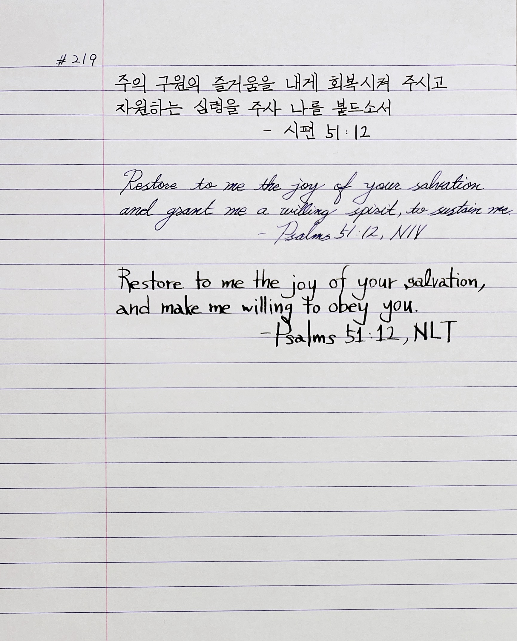 주의 구원의 즐거움을 내게 회복시켜 주시고 자원하는 심령을 주사 나를 붙드소서 _시51:12
