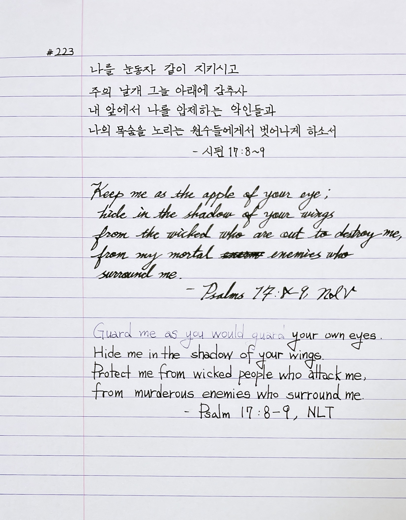 8 나를 눈동자 같이 지키시고 주의 날개 그늘 아래에 감추사