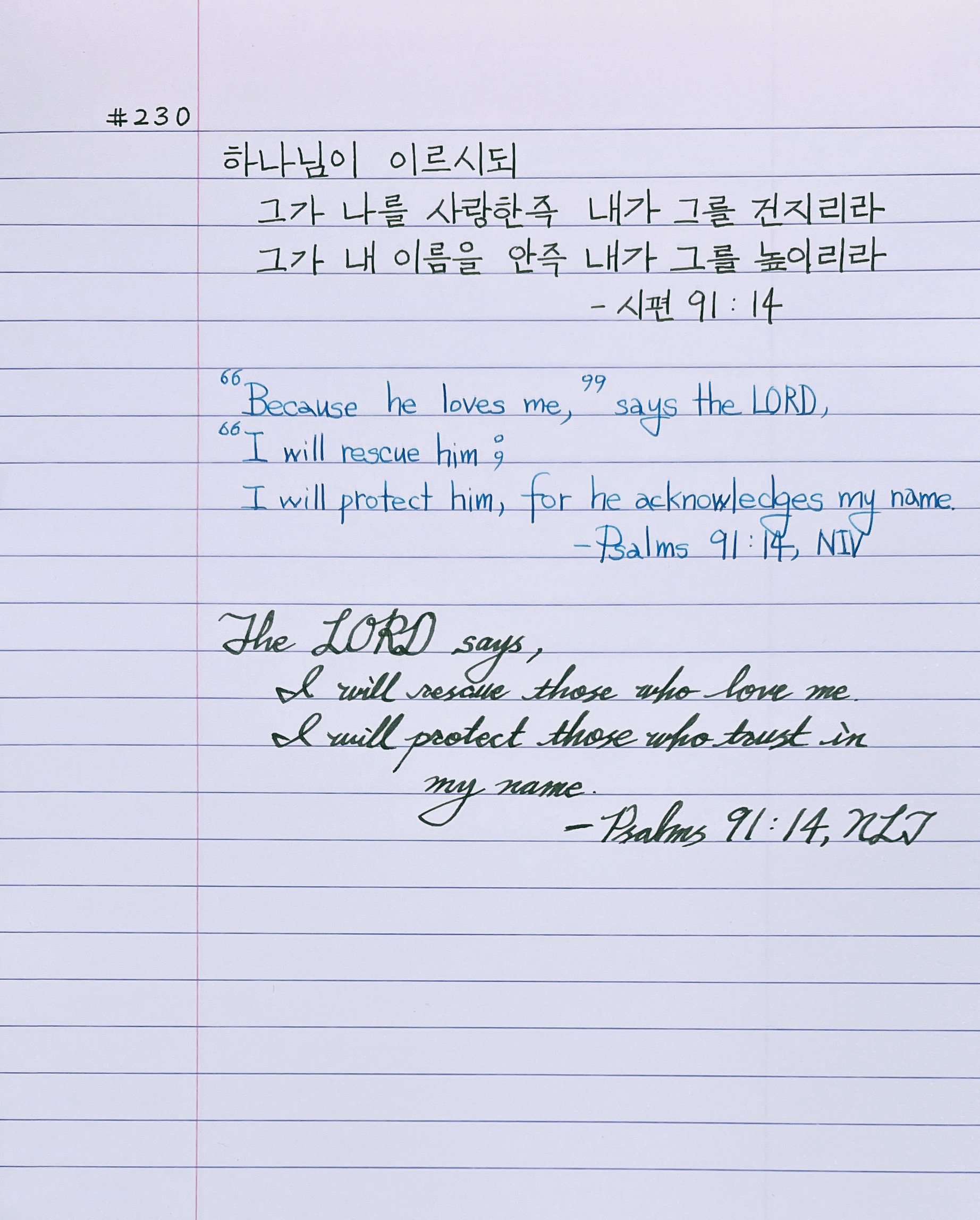 하나님이 이르시되 그가 나를 사랑한즉 내가 그를 건지리라 그가 내 이름을 안즉 내가 그를 높이리라 _시91:14