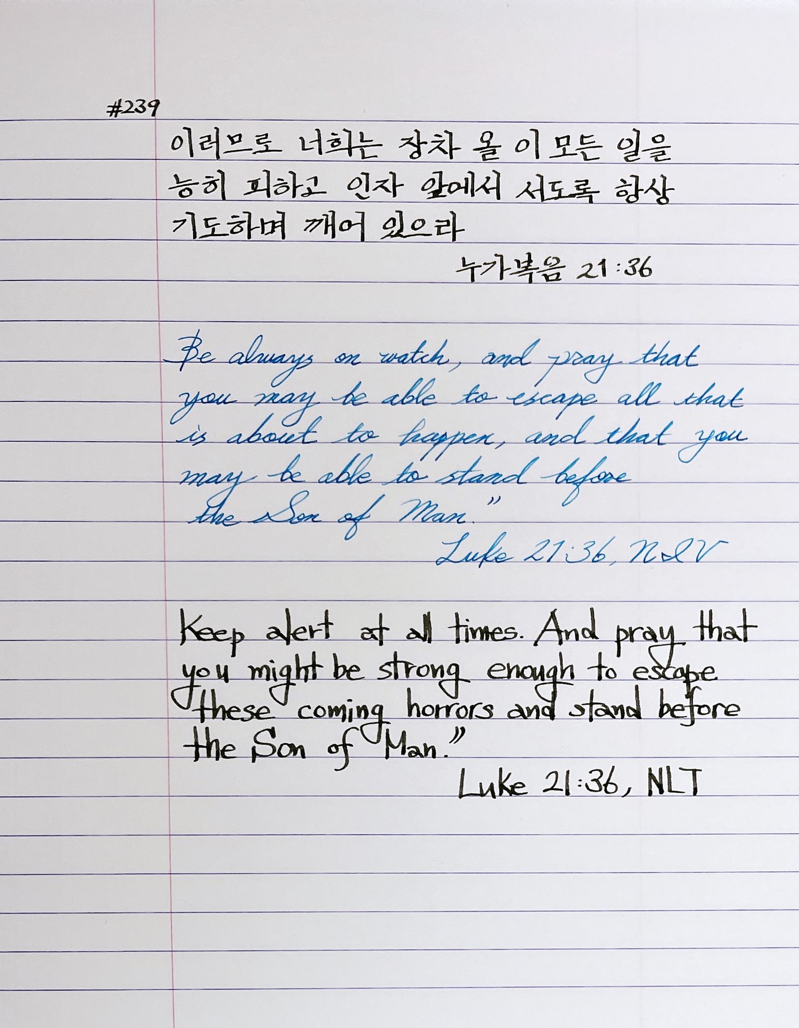 이러므로 너희는 장차 올 이 모든 일을 능히 피하고 인자 앞에 서도록 항상 기도하며 깨어 있으라 하시니라 _눅21:36