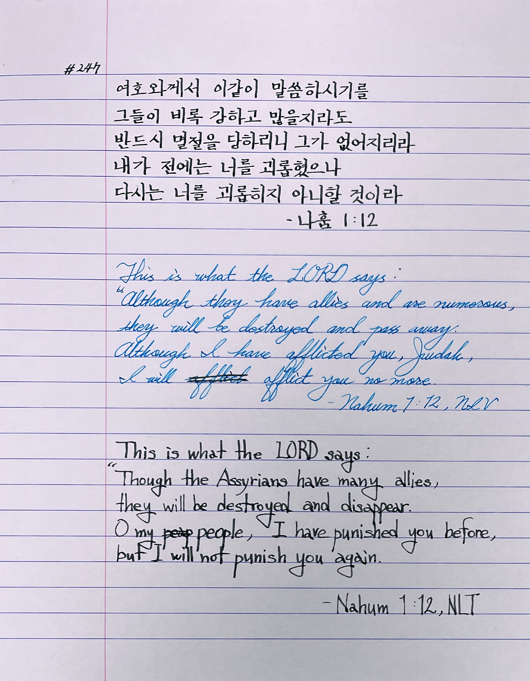 This is what the LORD says: "Though the Assyrians have many allies, they will be destroyed and disappear. O my people, I have punished you before, but I will not punish you again. _Nahum 1:12, NLT