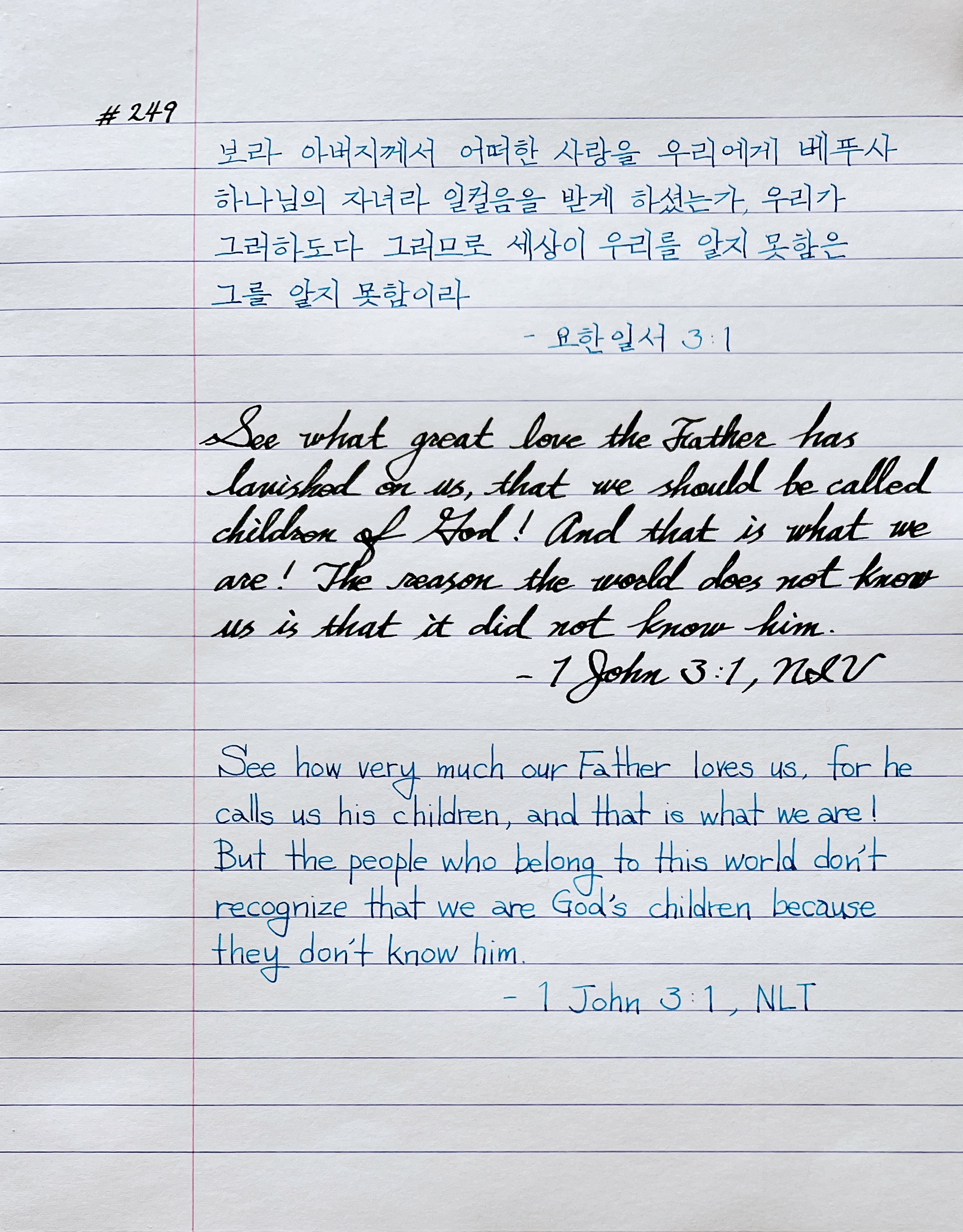 보라 아버지께서 어떠한 사랑을 우리에게 베푸사 하나님의 자녀라 일컬음을 받게 하셨는가, 우리가 그러하도다 그러므로 세상이 우리를 알지 못함은 그를 알지 못함이라 _요일3:1
