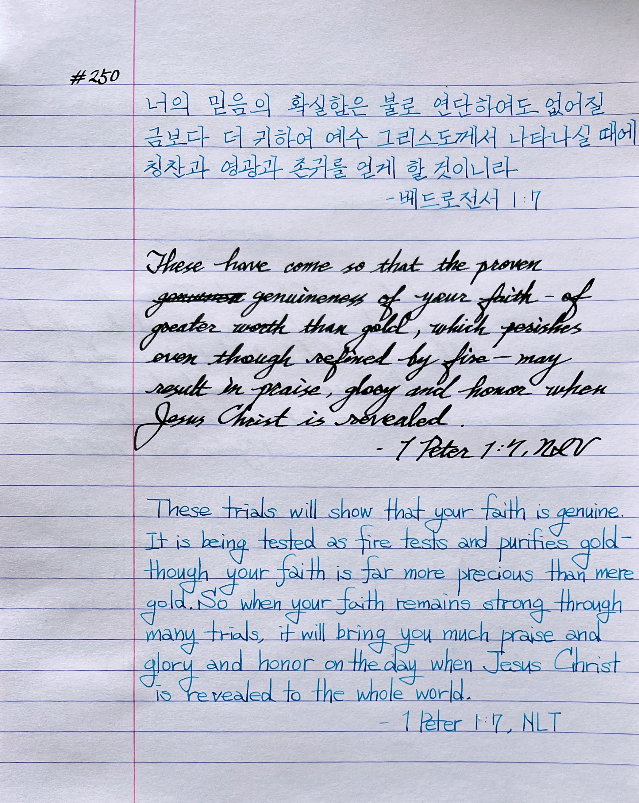 너희 믿음의 확실함은 불로 연단하여도 없어질 금보다 더 귀하여 예수 그리스도께서 나타나실 때에 칭찬과 영광과 존귀를 얻게 할 것이니라 _벧전1:7