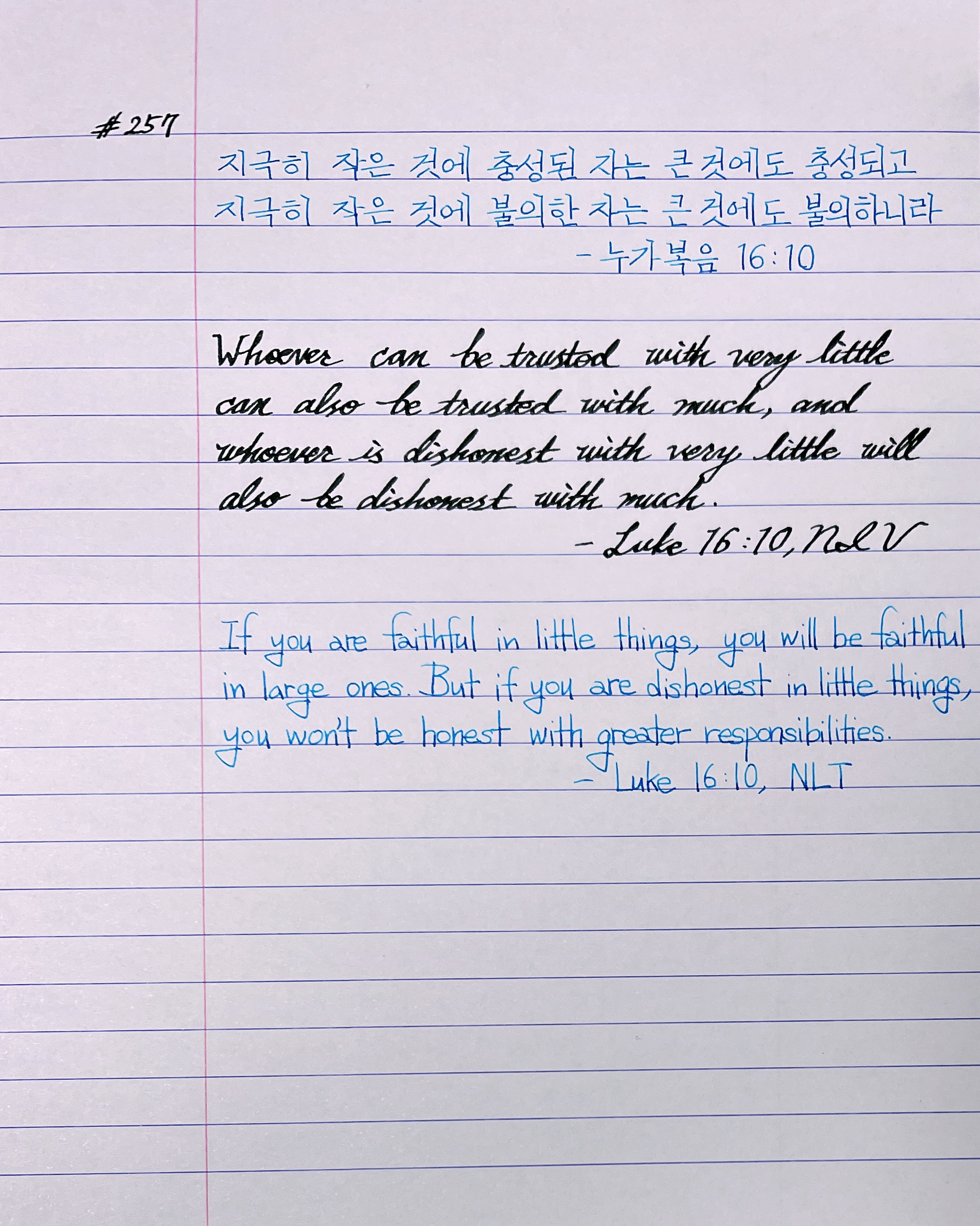 지극히 작은 것에 충성된 자는 큰 것에도 충성되고 지극히 작은 것에 불의한 자는 큰 것에도 불의하니라 _눅16:10