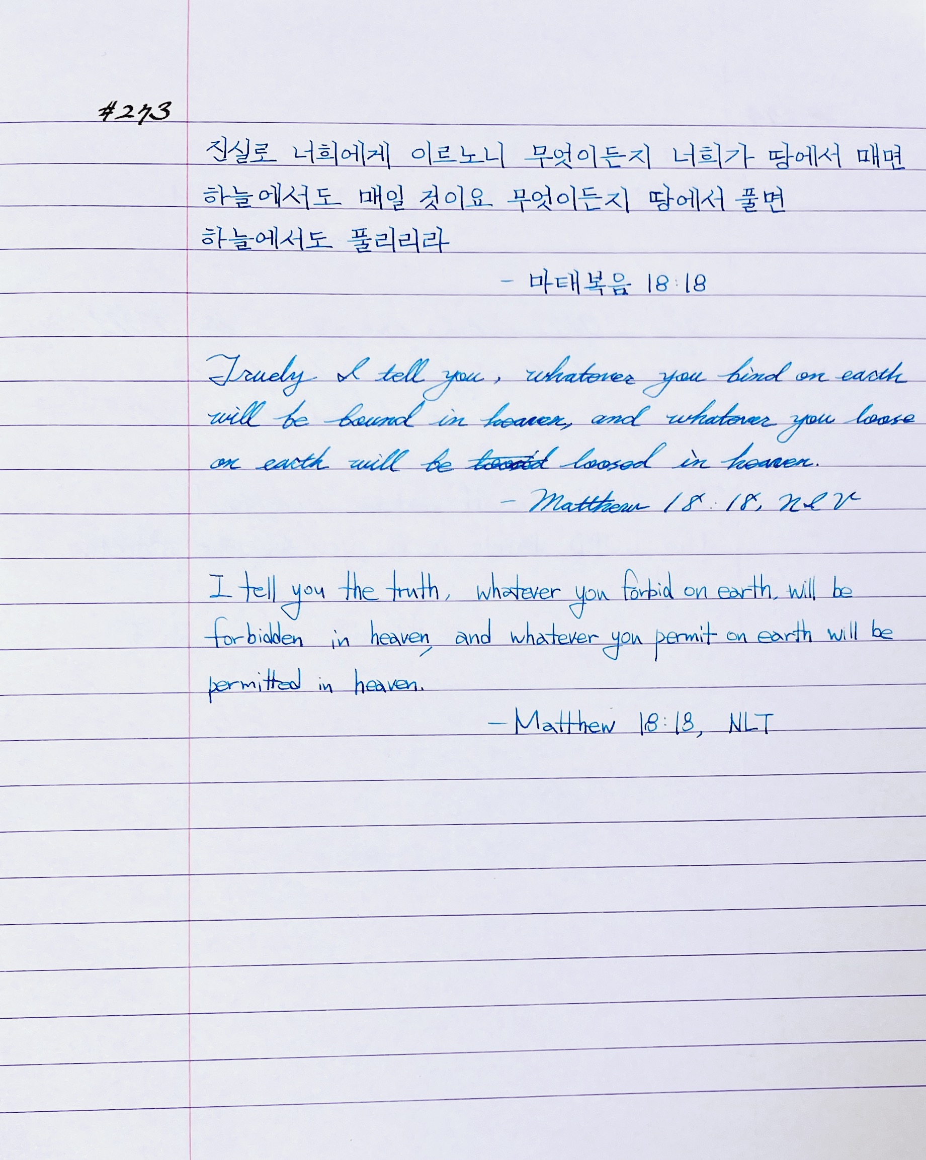 진실로 너희에게 이르노니 무엇이든지 너희가 땅에서 매면 하늘에서도 매일 것이요 무엇이든지 땅에서 풀면 하늘에서도 풀리리라 _마18:18
