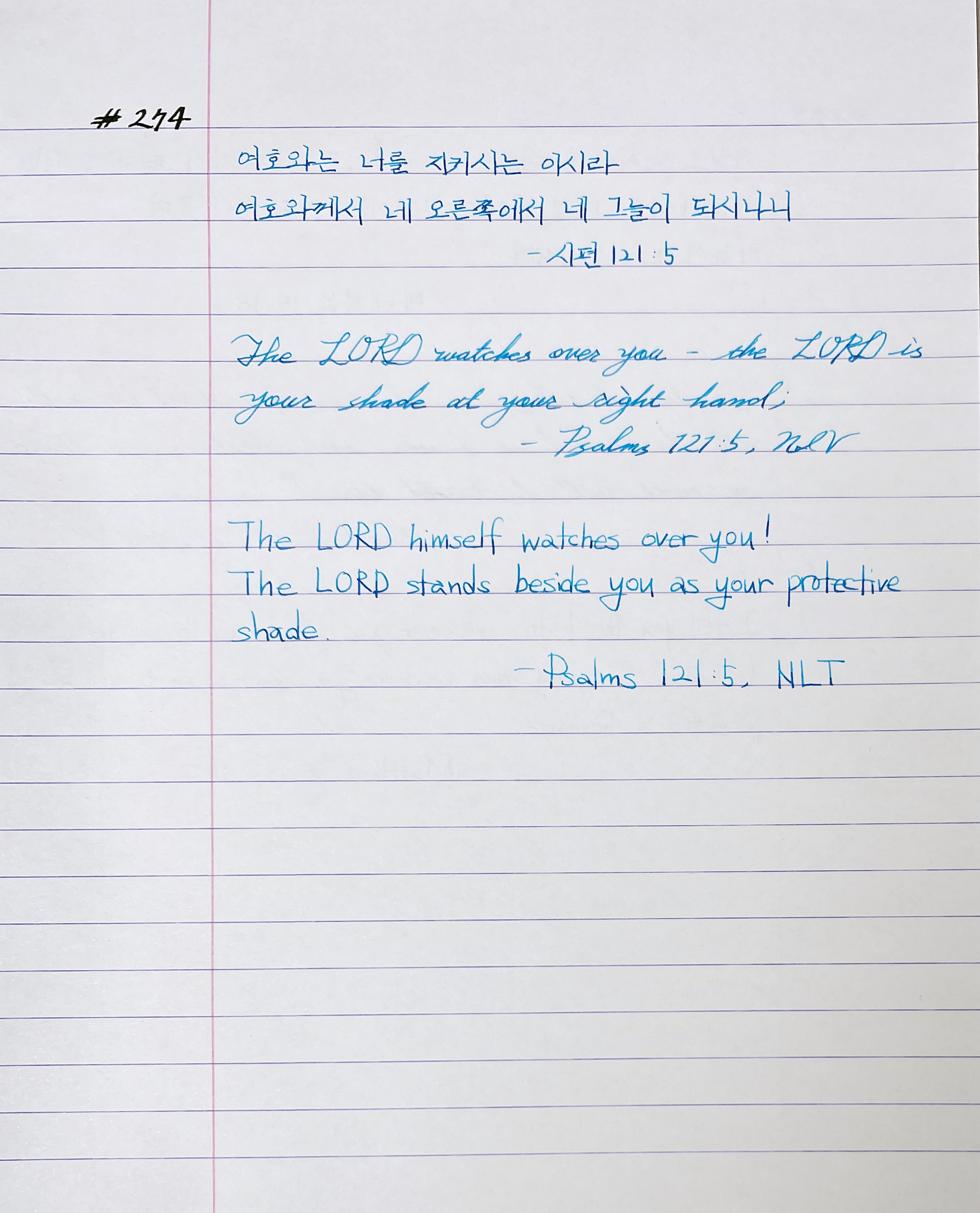 여호와는 너를 지키시는 이시라 여호와께서 네 오른쪽에서 네 그늘이 되시나니 _시121:5