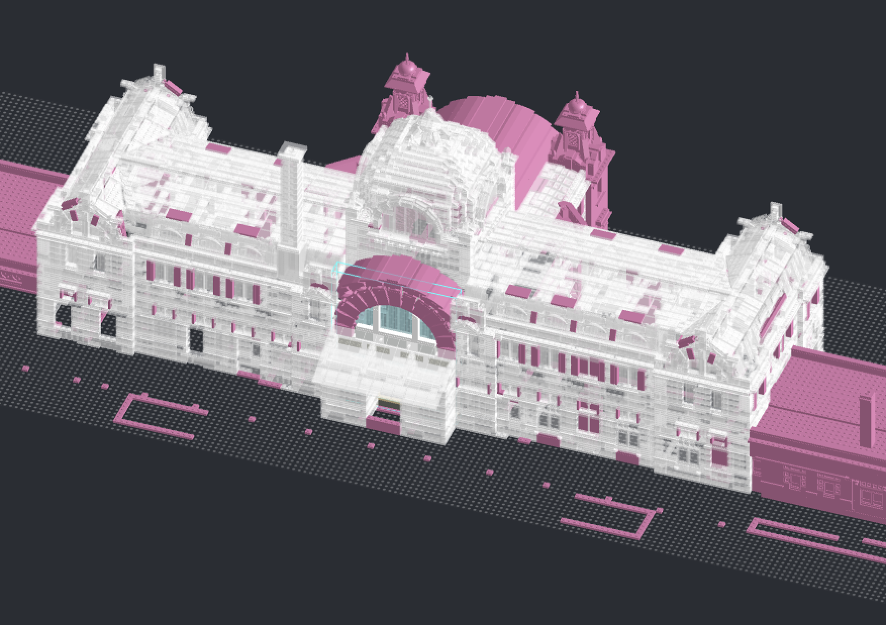 그렇게 다시 만들어진 기초 라인이다. 파란색이 기존에 작업했던 것이고 빨간색이 격자를 기준로 새로 작성한 부분이다.