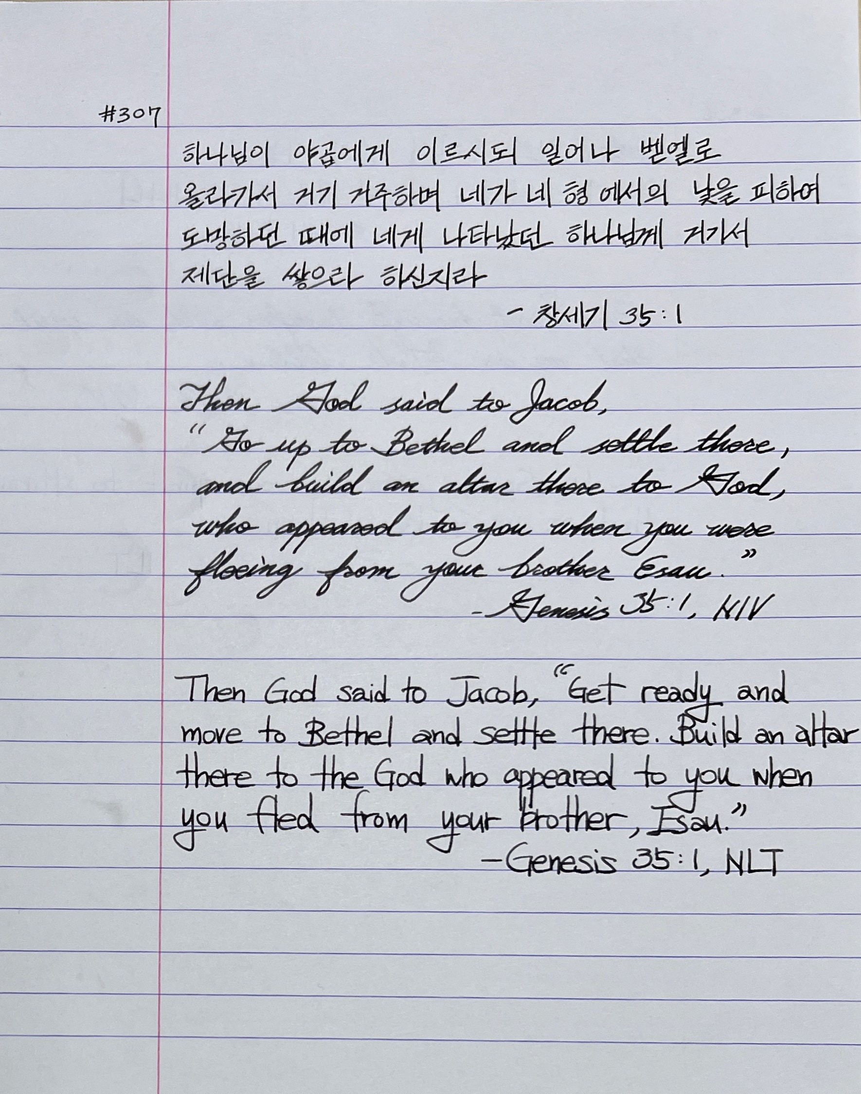 하나님이 야곱에게 이르시되 일어나 벧엘로 올라가서 거기 거주하며 네가 네 형 에서의 낯을 피하여 도망하던 때에 네게 나타났던 하나님께 거기서 제단을 쌓으라 하신지라 _창35:1