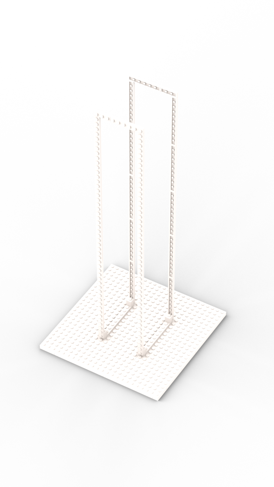 위성으로 확인한 바닥의 폭이 24m이므로 1stud를 1m로 바닥 24x24, 탑폭 10x10, 높이 51으로 탑의 전체적인 규모를 결정했다.