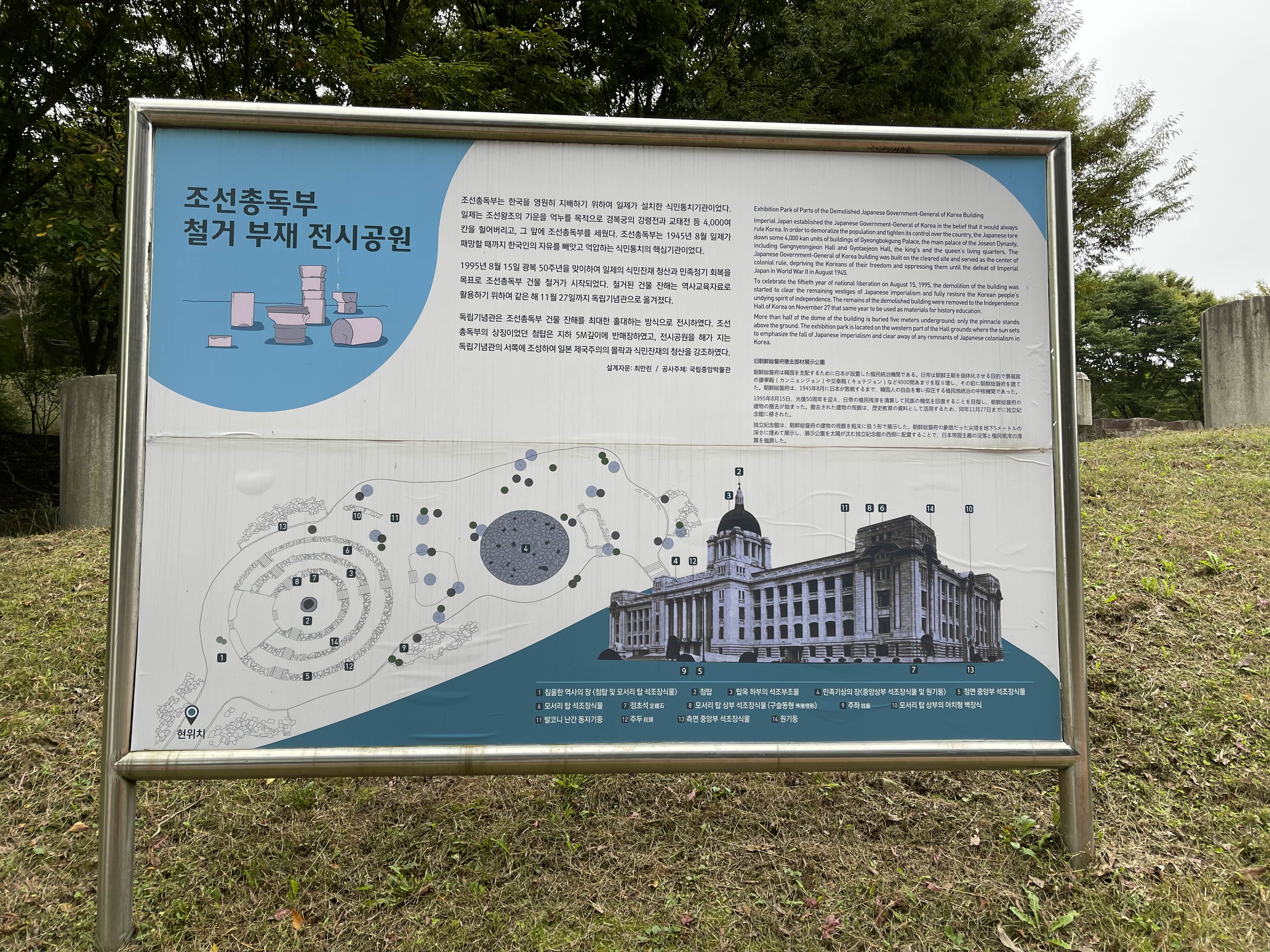 조선 총독부 철거 부재 전시 공원은 일제가 조선 식민 통치 기관으로 사용했던 조선 총독부 건물을 해체하고, 그 남은 건축 잔해를 통해 수치스럽고 아픈 역사를 기억하고 되풀이하지 않겠다고 다짐하며 만든 공원이다.