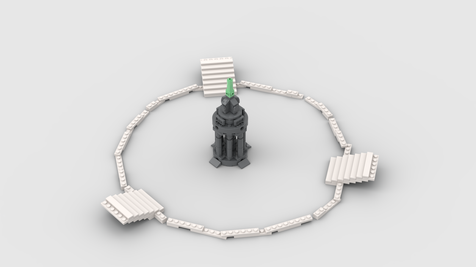 이를 LEGO로 구성하면 확실히 크기가 커질 수 밖에 없으므로 탑을 중심으로 1단 정도만 구성하기로 했다. 우선 탑을 구성하고 이를 중심으로 둥근 모양으로 하단부를 만들었다.