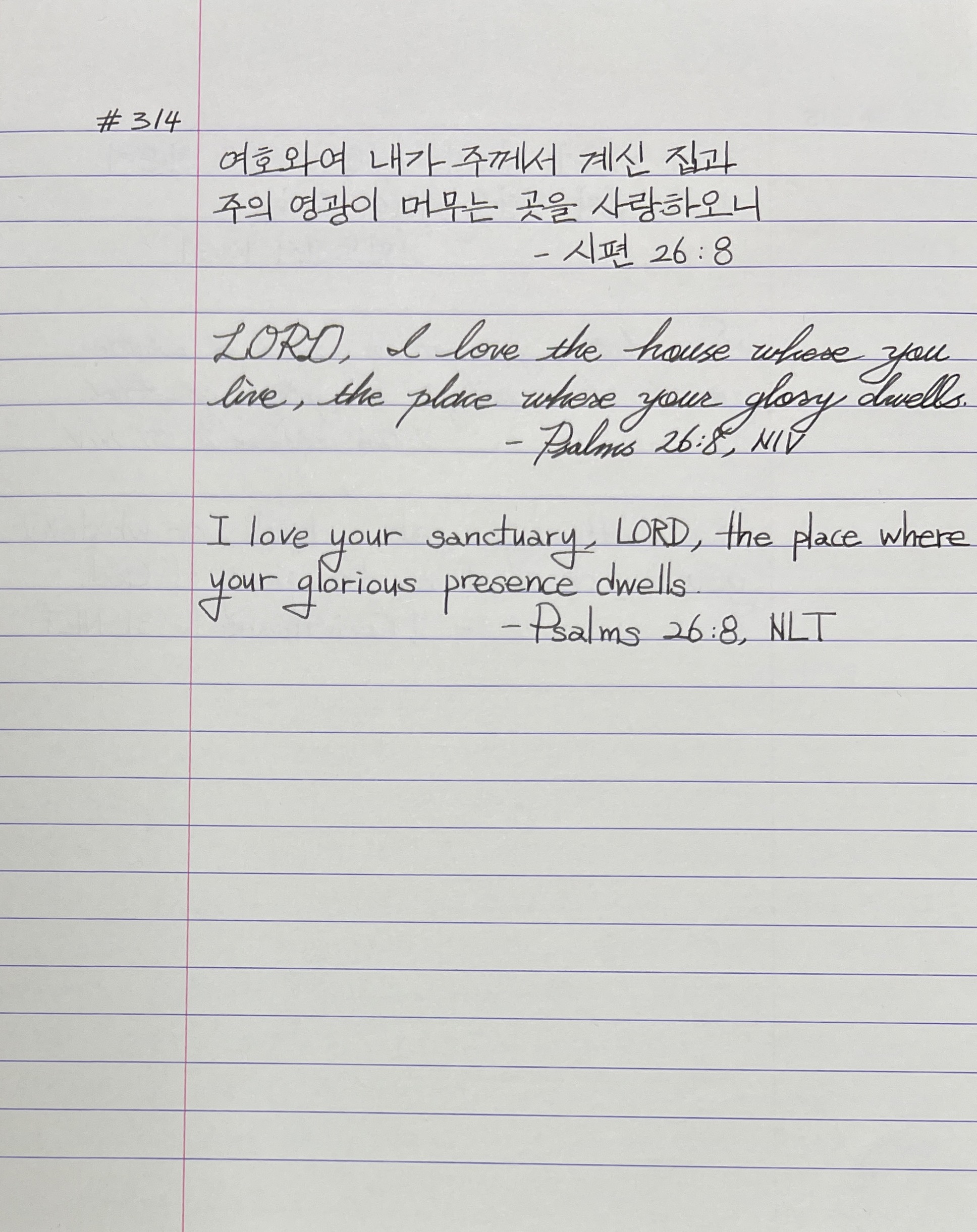 여호와여 내가 주께서 계신 집과 주의 영광이 머무는 곳을 사랑하오니 _시26:8