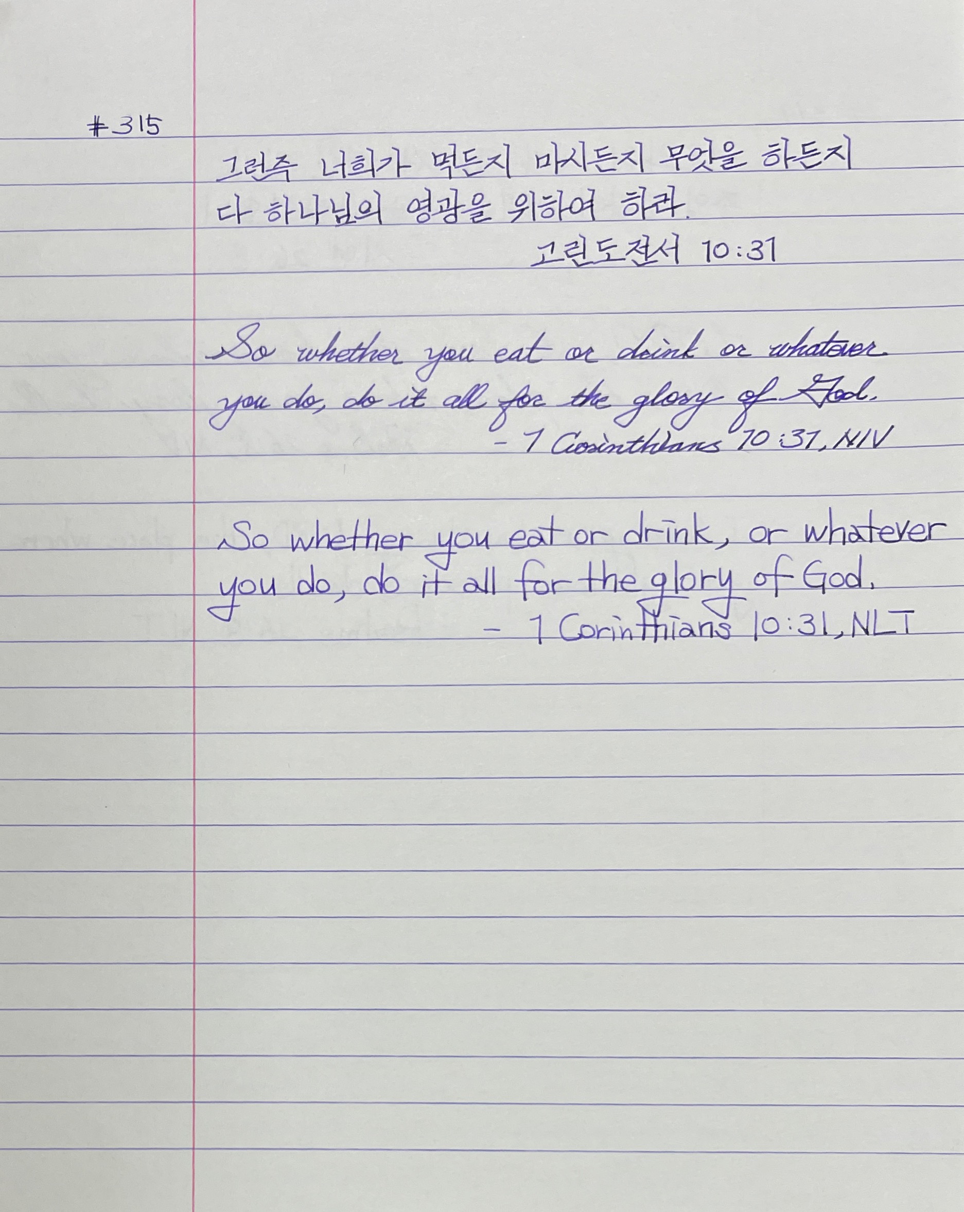 그런즉 너희가 먹든지 마시든지 무엇을 하든지 다 하나님의 영광을 위하여 하라 _고전10:31