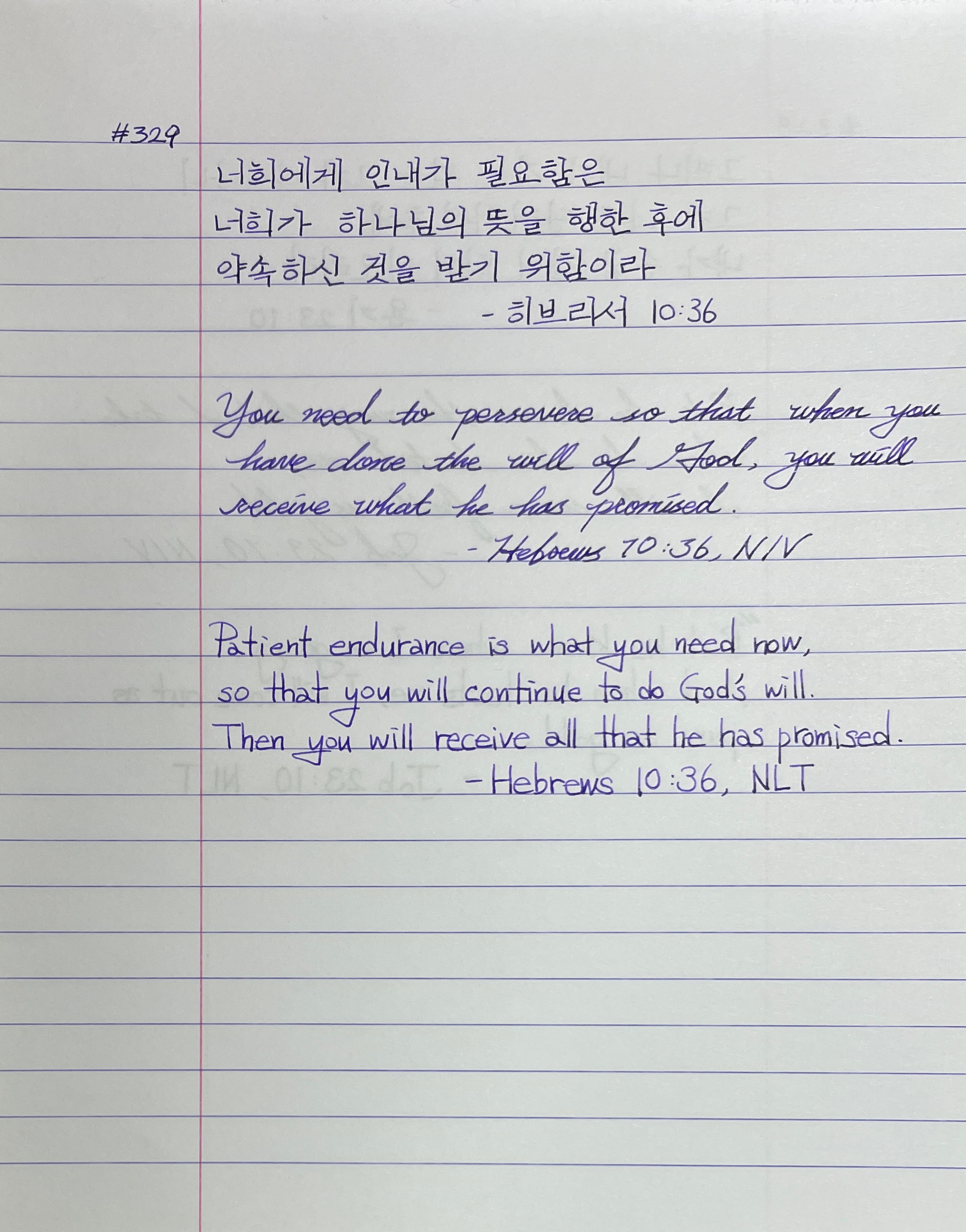 너희에게 인내가 필요함은 너희가 하나님의 뜻을 행한 후에 약속하신 것을 받기 위함이라 _히10:36