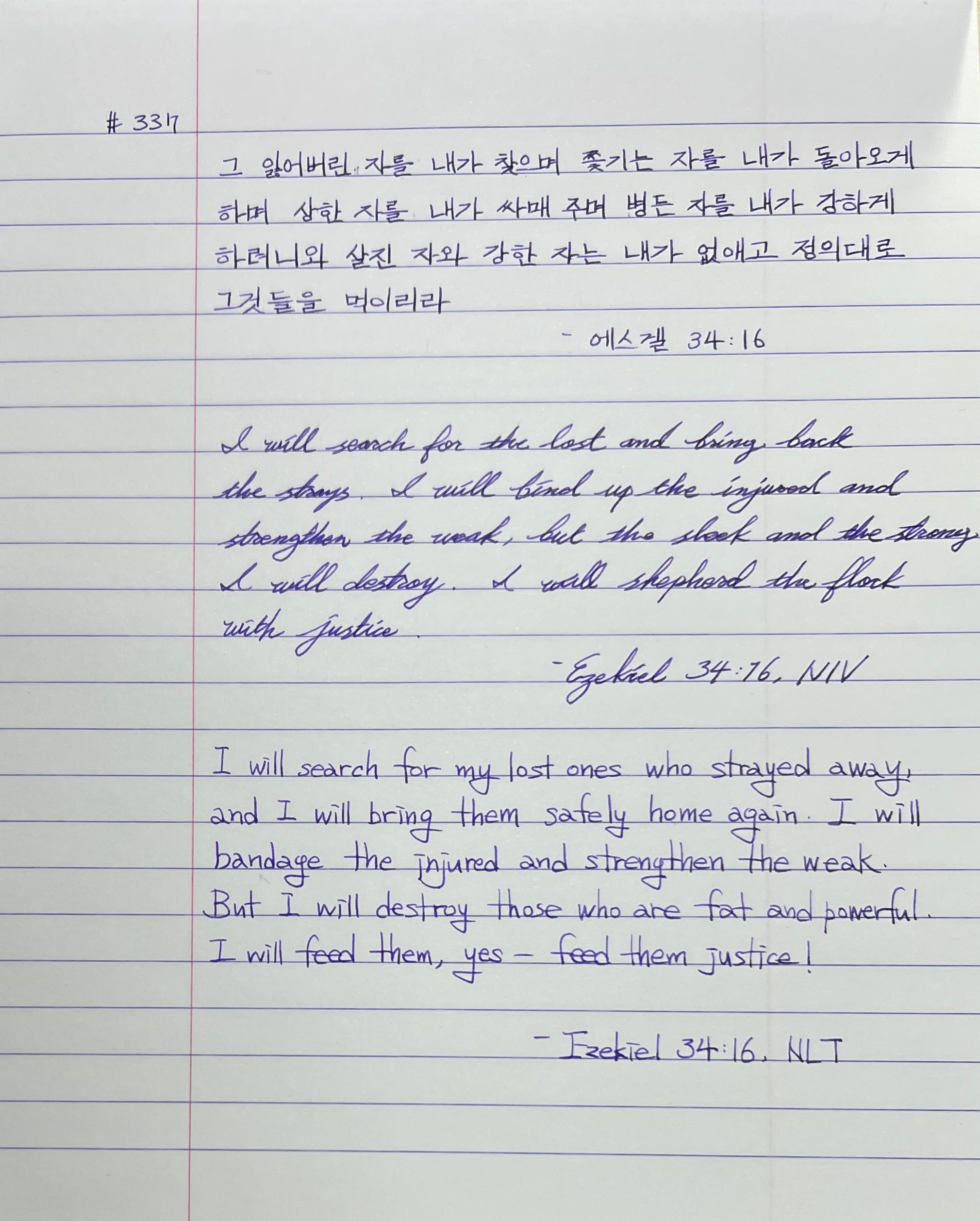 그 잃어버린 자를 내가 찾으며 쫓기는 자를 내가 돌아오게 하며 상한 자를 내가 싸매 주며 병든 자를 내가 강하게 하려니와 살진 자와 강한 자는 내가 없애고 정의대로 그것들을 먹이리라 _겔34:16