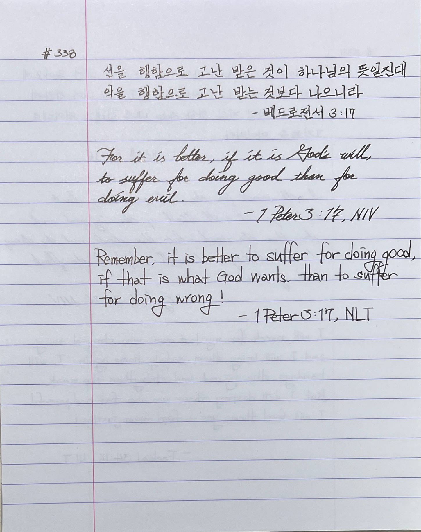 선을 행함으로 고난 받는 것이 하나님의 뜻일진대 악을 행함으로 고난 받는 것보다 나으니라 _벧전3:17