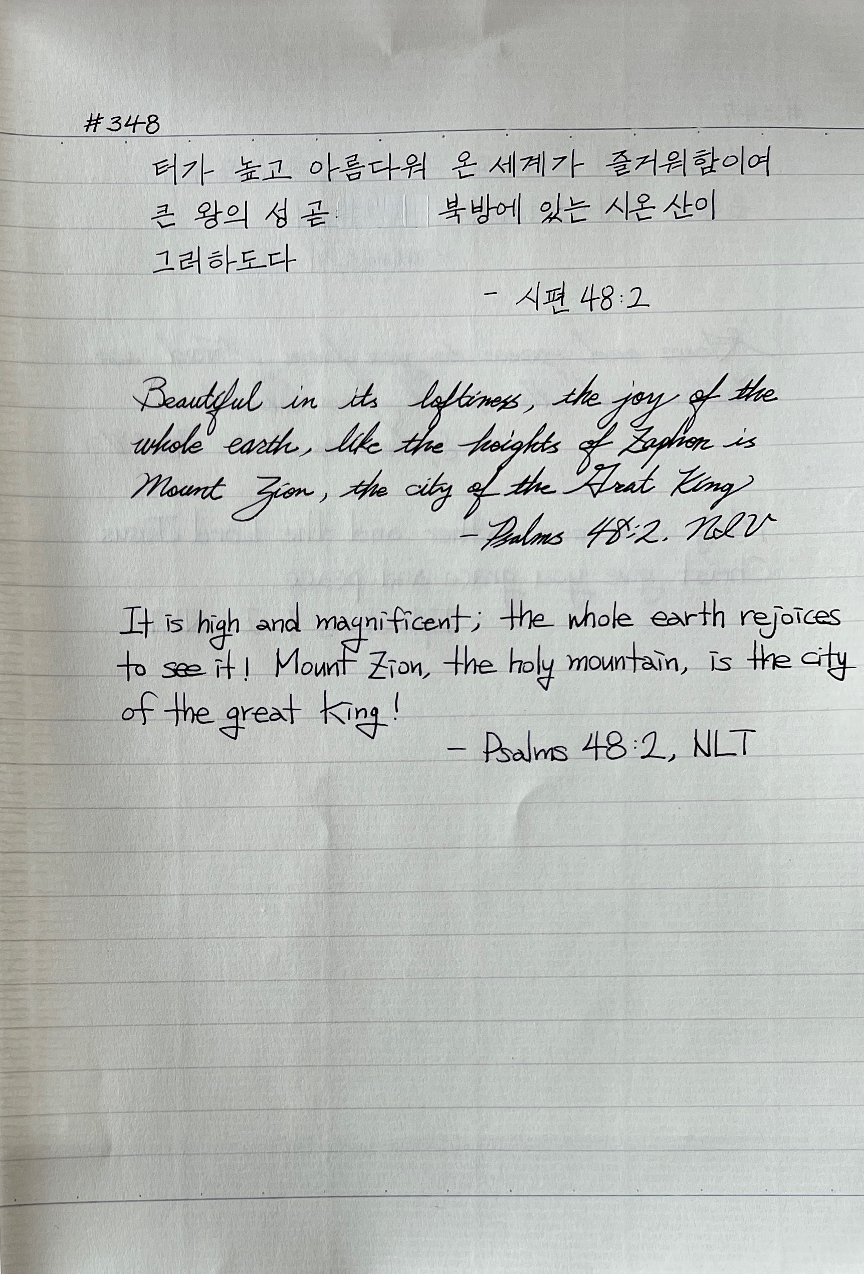 Beautiful in its loftiness, the joy of the whole earth, like the heights of Zaphon is Mount Zion, the city of the Great King. _Psalms 48:2, NIV
